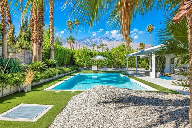 A Mid-Century Polynesian Paradise in South Palm Springs; 3 Bed, 2 Bath, Updated Throughout, Private Oasis Backyard on a large lot. Welcome to your tropical retreat in the heart of South Palm Springs. This rare Mid-Century Polynesian-style Alexander/Krisel, part of the 'Araby Estates' blends vintage charm with modern upgrades, offering the perfect desert hideaway for full-time living, vacationing, or investment.Step inside and enjoy the light-filled open floor plan with thoughtfully updated interiors, while the home's distinctive architectural lines and Polynesian details preserve its mid-century character.Features Include: Updated kitchen & bathrooms Modern flooring, lighting, and finishes throughout Spacious living area with seamless indoor-outdoor flow Owned solar and energy-efficient upgrades and improvements (see document section for full list).Entertainer's Dream Backyard:Step into your private walled oasis, designed for laid-back desert living and unforgettable gatherings: 2024 swimming pool renovation heated by solar A covered Patio area for relaxing, a beautiful Dining space perfect for al fresco dinners, Built-in fire pit for cozy desert nights all set in Lush landscaping & complete privacy from all sides.Whether you're lounging poolside, hosting under the stars, or soaking in the serene mountain views, this backyard delivers resort-style living at its finest. This home is truly move-in ready. Located in desirable South Palm Springs, close to golf, hiking, shopping, and dining -- all while being nestled in a quiet residential pocket.Don't miss this unique opportunity to own a piece of Palm Springs history with modern-day amenities. Check out the improvements and upgrades in the 'documents ' tab along with the video..