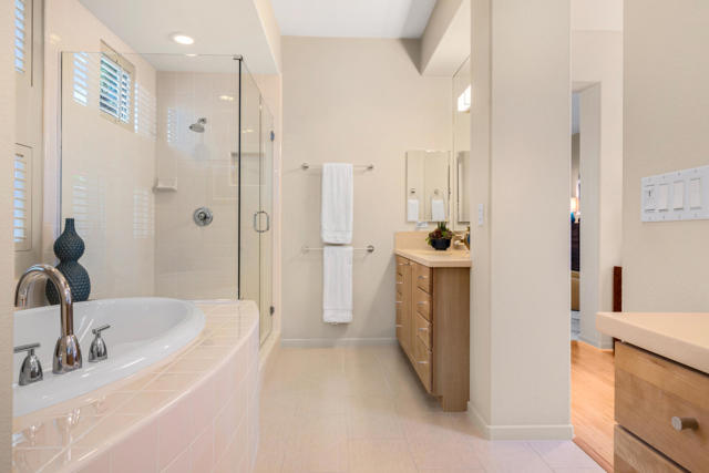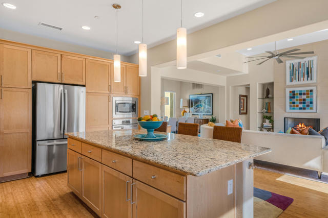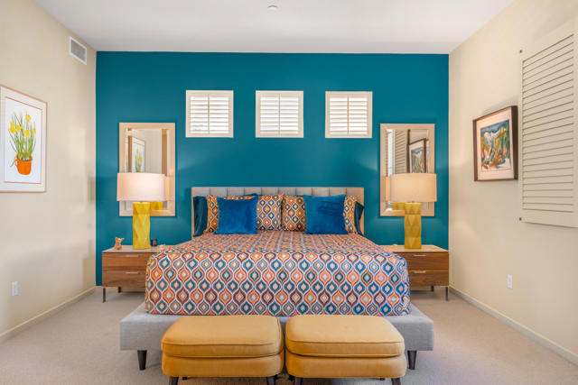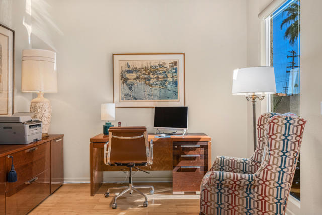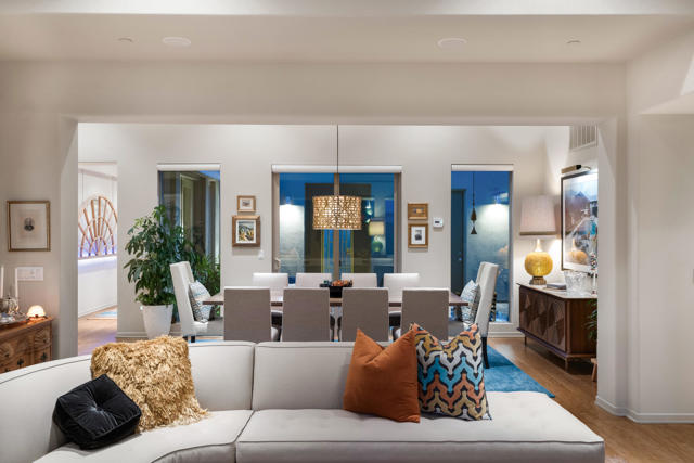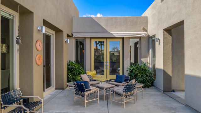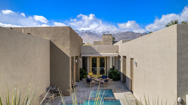 This stunning home in Luminaire is a truly remarkable residence. Sited on a unique end lot, it is a prime location with expansive mountain views. Exclusive features include a cocktail pool and therapeutic spa in the completely private central courtyard. The upgraded amenities and renovations create a luxurious lifestyle, and include newer sinks, fixtures and flooring in the bathrooms, carbonized bamboo floors in the main living areas, all wool carpeting in the bedrooms, granite counters, stainless GE Profile appliances and cabinet modifications in the kitchen. Luminaire is known for its newer construction, low maintenance desert landscaping and favorable location in the South End of Palm Springs, which further enhance its desirability. Additionally, fee land and low HOA fees make it an attractive option for potential buyers seeking both quality and value. With its blend of modern amenities, contemporary design, and breathtaking views, Luminaire homes are rarely available. This property epitomizes the allure of sophisticated desert living at its finest.