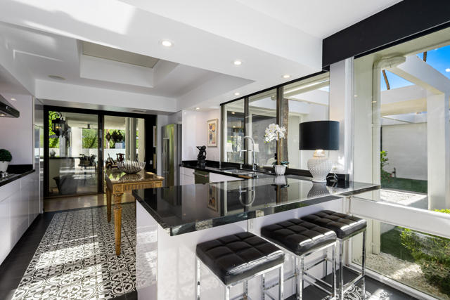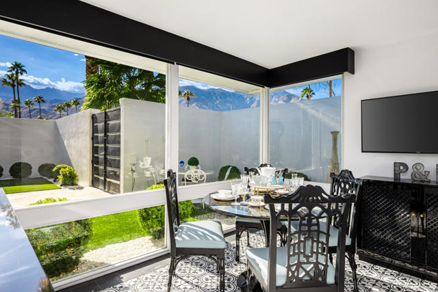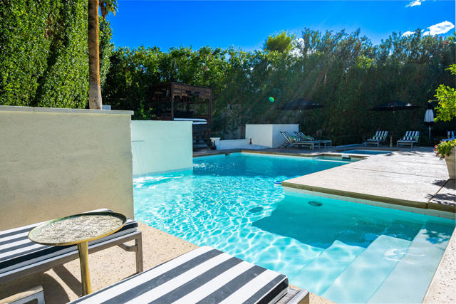 3410 Andreas Hills is more than a home, it's a statement of vision and style. Conceived by celebrated modernist John Walling, this 3,207 sq ft architectural gem captures the seamless connection between indoors and desert landscape that defines the best of Palm Springs living. Floor-to-ceiling glass walls dissolve boundaries, flooding every space with light and framing the San Jacinto Mountains as living art. From the moment you enter, Walling's intent is unmistakable, the mountains feel like part of the home. The grand living pavilion evokes the golden age of Palm Springs entertaining, a luminous expanse of glass and stone where dining, lounging, and cocktails mingle beneath soaring ceilings. A sleek gas fireplace anchors the room, while the Sonos sound system and sunken wet bar invite effortless gatherings that flow naturally to the terrace beyond. A clever pass-through window connects the bar to the covered outdoor lounge, dissolving the line between indoors and out. The chef's kitchen, newly remodeled with double ovens and a gas cooktop, is designed for both intimate dinners and lively weekend gatherings. Step outside to an oversized corner lot surrounded by mature desert landscaping, your own private oasis. Lounge by the resort-style pool, dine beneath the stars, or gather around the fire pit as the sunset ignites the mountains. Every detail celebrates the art of indoor-outdoor living. When it's time to unwind, Walling's thoughtful layout ensures privacy for all three bedrooms. The primary suite is a secluded retreat with its own fireplace, a spa-inspired bath, and two private patios, each perfectly positioned to capture the shifting desert light. Offered fully furnished with curated designer pieces, 3410 Andreas Hills embodies the sophisticated yet effortless spirit of Palm Springs, a discreet hideaway for the creative set, where design, comfort, and the desert's quiet magic exist in perfect harmony.