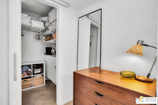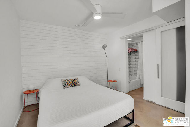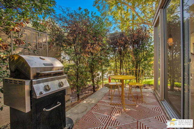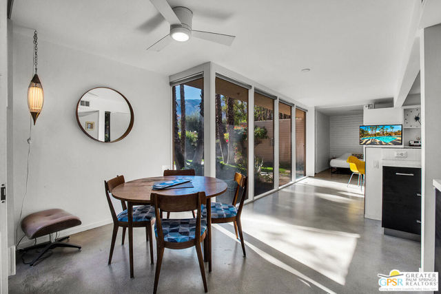 Nestled amidst lush, mature landscaping is this exceptional turnkey one-bedroom, one-bathroom retreat tucked behind the gates of Racquet Club Cottages West (formerly Racquet Club Garden Villas) in Palm Springs. Designed by renowned architect William F. Cody, the home emphasizes a seamless connection between indoor and outdoor living. Floor-to-ceiling windows flood the space with natural light, while the south-facing orientation enhances its warm, inviting ambiance, while providing lovely mountain views. There is an attached patio perfect for al fresco dining and enjoying the outdoors. As a historically designated property, Racquet Club Cottages West combines mid-century charm with modern convenience. The homeowners' association (HOA) maintains the amazing Philip A. Shipley designed landscape as well as the famous community pool and spa. The monthly dues include water, trash services, and roof maintenance. Short-term rentals are permitted with a 14-day minimum stay, offering excellent flexibility. Additionally, buyers may enjoy substantial tax savings through the Mills Act, making this property an ideal investment opportunity. Contact agent for a private showing.