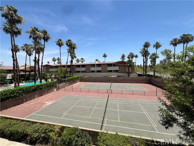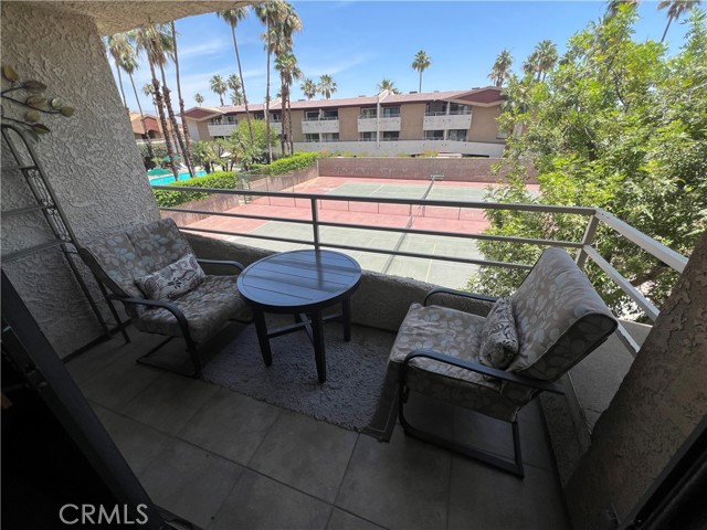 This beautiful condo is located in a resort-style complex with a pool, tennis courts, and gated entry. The condo is Turnkey condition. Palm Springs Biarritz is known for its great location and walking distance to the village which no other desert community has. The community features beautiful landscaping, a large pool with two spas and two tennis courts. The views are of Mt. San Jacinto, or south to the Santa Rosas, or east as far as the eye can see. Attention investors! HOA allows 3 days minimum short term rentals. Don't miss it!!!