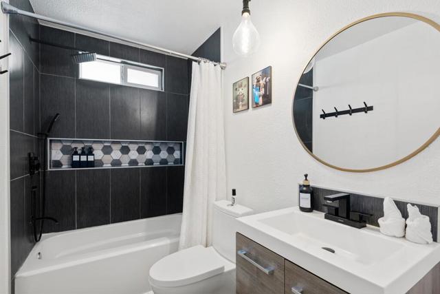 Beautifully updated home with an in-ground private pool and no HOA is ready to be made yours! The front yard is fully fenced with gated parking adding lots of privacy. The interior of the home is open and spacious with upgrades throughout the entire home. The living room is open and spacious with feature wall framing the entertainment area. The Chef's kitchen features high end appliances, full wall subway tile backsplash, and breakfast bar seating area. The kitchen also opens to a dining area as well as overlooks the living room. There are 3 generously sized bedrooms including the large primary suite with private slider to the backyard and stunning ensuite with custom feature wall, a backlit mirror and a full-size walk-in shower with seamless glass enclosure. There is also an updated, full-size, hall bathroom for the secondary bedrooms and guests to share. A Den or a 4th bedroom option and a hallway laundry closet complete the floor plan. Relax and entertain in the private backyard with block wall fencing, beautiful mountain views, and in-ground swimming pool, plus there is a large grass area to enjoy. Conveniently located near shopping, dining, and more. Move right in and start making unforgettable memories in this inviting home!