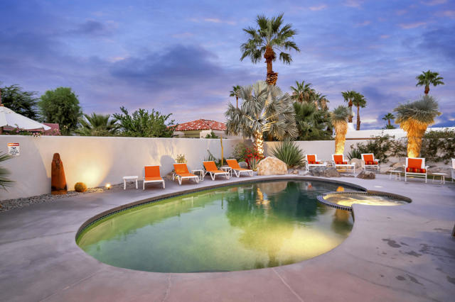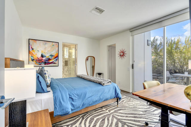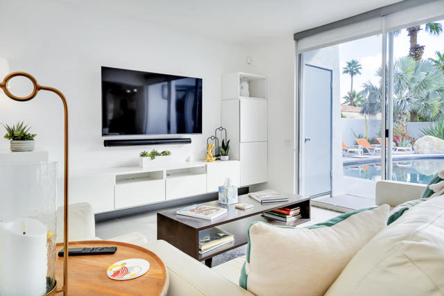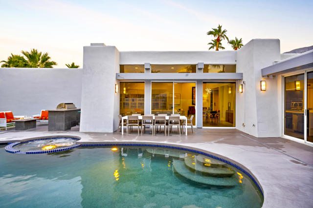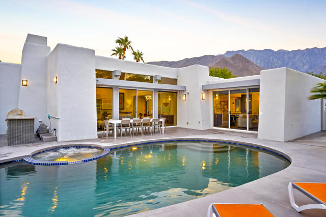 Desert Oasis with Private Outdoor Spaces and Stunning Mountain Views.Welcome to your dream retreat! This exquisite single-family home seamlessly blends luxury, comfort, and the serene beauty of desert living, making it the perfect sanctuary for you, your family, and friends. Adjacent open space means no neighbors to the west and unobstructed desert and mountain views.Step into the gourmet chef's kitchen, complete with a huge island that's perfect for meal prep and casual dining. This kitchen is designed for both functionality and style, ideal for culinary enthusiasts. The open layout flows seamlessly into the adjacent great room, creating an inviting space for family gatherings and entertaining guests.4 Bedrooms: Each features its own private outdoor space, offering breathtaking views of the San Jacinto Mountains. The primary and a secondary are both ensuite, and the primary has a walk in closet. Enjoy serene mornings or tranquil evenings in your personal oasis.4 Modern Baths: Thoughtfully designed bathrooms provide both style and convenience.Resort-Style Outdoor Living: Experience the ultimate in entertaining with a built-in poolside cooking area. Host barbecues by the sparkling pool and unwind in the soothing spa, the perfect environment for relaxation and fun.Generous Private Lot: Nestled on a large, secluded lot, this home provides ample space for outdoor activities, enhancing your desert lifestyle.Primary Residence or Investment: This property is perfect as a primary home or a lucrative investment opportunity! The neighborhood allows for vacation rentals, making it an excellent choice for those looking to generate income.Prime Location: Conveniently located with easy access to downtown, you can enjoy shopping, dining, and entertainment while still relishing Palm Springs.Open Concept Design: The spacious layout of the kitchen, great room, and living room flow seamlessly outside and in.Sold turn-key furnished! Immediately start enjoying this beautiful desert home.An abundance of storage: The two car attached garage has additional space for hobbies or storage plus a large storage room.Desert Living at Its Finest: Experience stunning sunsets and clear skies, creating a relaxing atmosphere you will adore.Don't miss the chance to own this exceptional home that embraces the beauty of desert living, offers unparalleled privacy, and presents fantastic investment potential. Sold turn-key furnished! Immediately enjoy this desert home.
