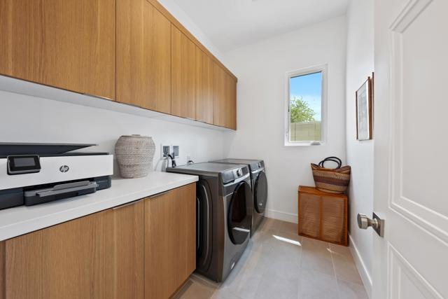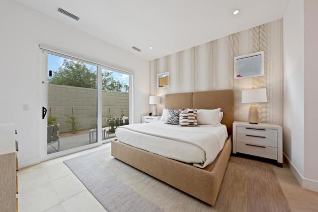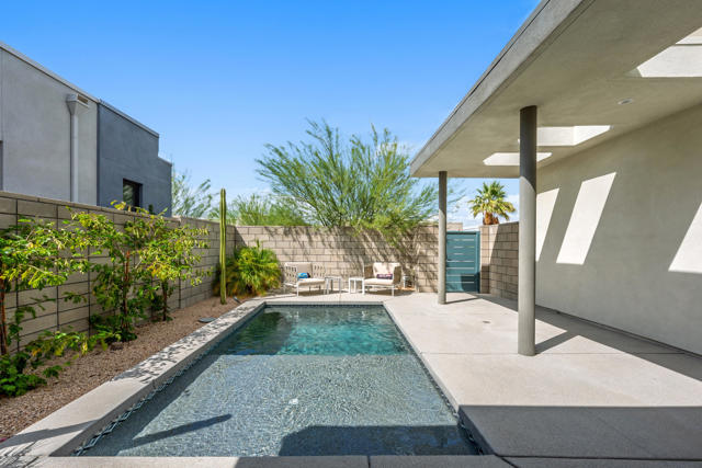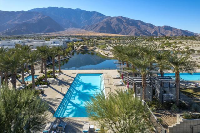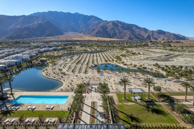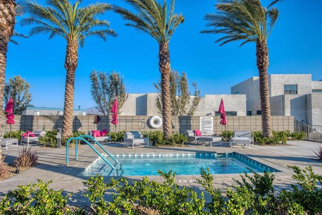 Experience modern luxury living at its finest in this pristine 3-bedroom, 3.5-bath home, perfectly designed for style, comfort, and entertaining. The expansive great room impresses with soaring ceilings, luxe accents, and walls of picture-frame windows and sliders that bathe the interiors in natural light.A seamless flow connects the chef's kitchen--appointed with high-end Bertazzoni appliances, elegant finishes, and a spacious dining area--making it ideal for both intimate gatherings and grand events.Each ensuite bedroom is a private retreat, enhanced with custom wallpaper and premium finishes. Outside, enjoy a private front patio complete with a sparkling cocktail pool, perfect for lounging under the desert sky, or enjoy a meal dining within the outdoor enclave. Additional highlights include owned solar panels, smart home technology, tankless water heater, a soft water system, and an owned security system with service available.This amazing home is move-in ready, with furnishings available outside of escrow.Set within the gates of Miralon, a Palm Springs' premier modern luxury resort community, residents are surrounded by seven acres of olive groves, a scenic lake, and miles of walking trails with breathtaking sunrise and sunset views. Exceptional amenities include two heated lap pools, spa, full-service fitness center, yoga studio, Bar, BBQ area, fire pit area, bocce ball, event lawns, community U-Pick garden, dog parks, EV charging stations, and 24-hour gated security. Located just minutes from downtown Palm Springs, you'll enjoy easy access to boutique shopping, world-class dining, vibrant arts, and endless entertainment.Call now for a private viewing and let us show you what this exceptional home and community have to offer.