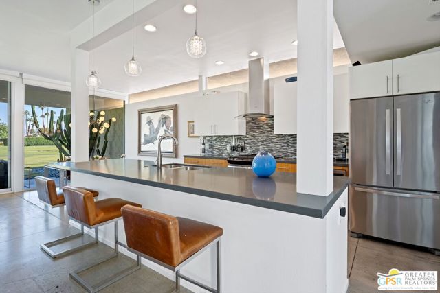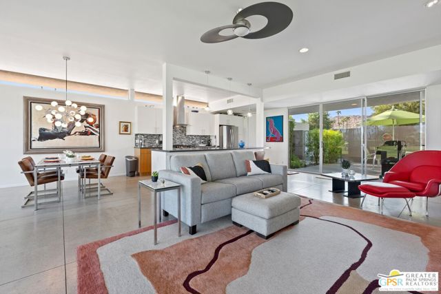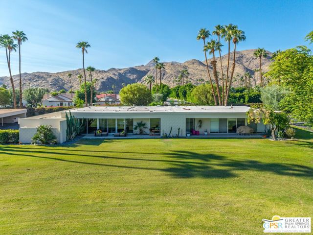 Improved Price! Indulge in the ultimate desert lifestyle at Seven Lakes Golf and Country Club! This stunning 2-bedroom, 2-bath Mid-Century Modern residence has been thoughtfully remodeled to combine timeless design with modern comforts. Every detail has been carefully maintained and upgraded, from newer windows and sliders to the electric panel, roof, HVAC system, water heater, and main water line - offering true peace of mind. Inside, the open-concept floor plan is flooded with natural light and features soaring ceilings, creating an airy, welcoming atmosphere. Entertain with ease as the living, dining, and kitchen areas flow seamlessly together, while the living room frames panoramic views of three pristine fairways. Step outside to a spacious private courtyard, perfect for morning coffee, alfresco dining, or simply soaking in the serene desert surroundings. Originally developed under a Tribal Lease, Seven Lakes has since transitioned to highly desirable Fee Simple Ownership, offering lasting value and peace of mind for homeowners. Seven Lakes Country Club is the fabulous mid-century modern community situated on 120 prime acres of South Palm Springs. Seven Lakes offers 24 hour guard-gate, a magnificent manicured 18 hole 2717 yard 58 par executive course, a club house with restaurant and bar. 15 community swimming pools and 15 spas as well as full sized tennis courts and pickleball courts. Built between 1964 and 1972, Seven Lakes Golf & Country Club is a private, mid-century modern gated community of 341 homes. Situated on 120 acres, Seven Lakes is in the southern section of Palm Springs in zip code 92264, close to downtown and shopping. The community provides breathtaking views over a Ted Robinson designed 18 hole executive golf course enhanced by mid-century modern architecture designed by Ric Harrison and William Cody. The Richard Harrison designed residences are situated throughout the golf course with stunning mountain views reflecting the natural beauty of the desert. Seven Lakes Golf & Country Club located just a few miles from downtown Palm Springs, surrounded by the Santa Rosa and San Jacinto Mountains. Living at Seven Lakes means access to unparalleled amenities: an iconic William Cody-designed clubhouse, a championship golf course crafted by Ted Robinson, 15 sparkling pools and spas, and round-the-clock guarded security. Here, every day feels like a luxury retreat. Don't miss the opportunity to own a home that combines style, comfort, and world-class resort living in one spectacular package.
