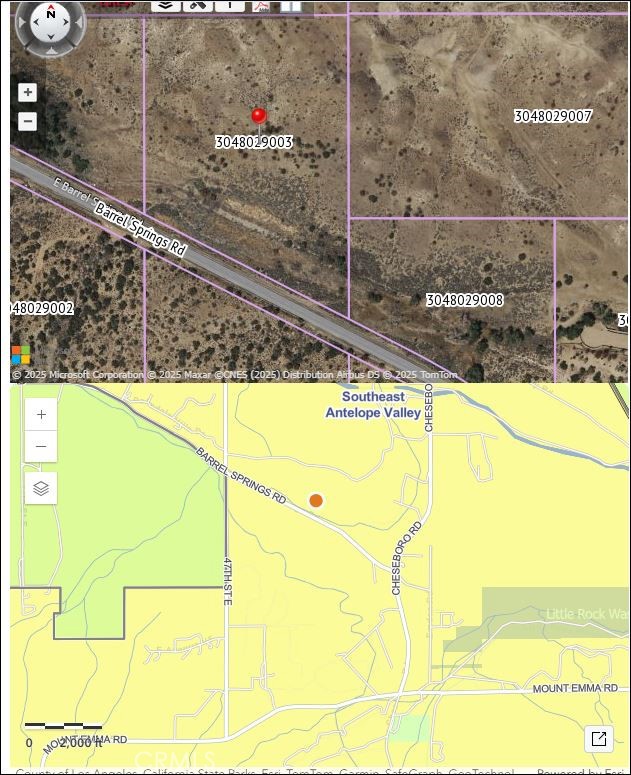 28.8 Acres Commercial Zoning, Easy acces to 14 freeway , Barrel Springs Ave runs in the middle of the both parcels making it very desirable for commercial use. Two parcels Included portfolio sale 3048029003 and 3048029008.