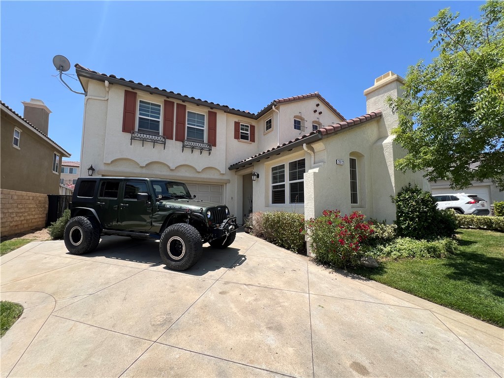 Beautiful former model home built by John Laing builders. This 5 bedroom 3 full bath home has it all under one roof. Everything has been upgraded from the custom tile flooring throughout the first level to the berber carpet on the second level. The kitchen features tuscan granite counters and cherry wood cabinets that opens up to a large family room. This home also features a study/library with its own fireplace. The living room features dramatic vaulted two-story ceilings that will impress all of your friends and family. Did I mention that all important 1st floor bedroom that is a must have for todays modern family, its located right off the kitchen. The Master bedroom & bath is fit for Royalty. It also features its own personal balcony. There are 3 additional large bedrooms on this level and a double sink bathroom to service them. The backyard is fully landscaped and ready for entertaining. Anaverde Hills is the #1 neighborhood in the AV. Come join us don't miss this opportunity!