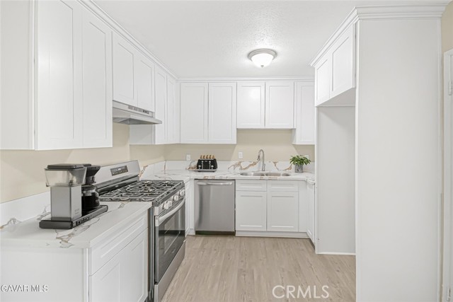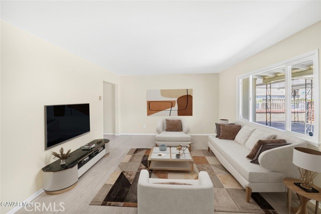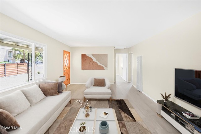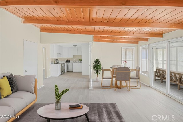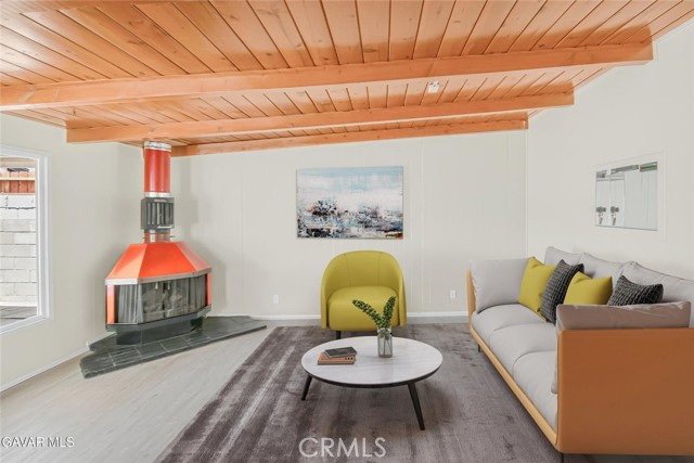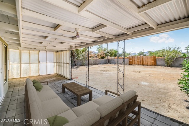 This beautifully renovated, move-in ready home begins with fresh full interior paint that gives every space a crisp, modern feel. The brand-new plank flooring throughout the entire house adds warmth and style, complemented by all-new light fixtures and plumbing fixtures that bring a polished touch to each room. The kitchen has been completely redone with brand-new cabinets, sleek new countertops, stainless steel appliances, a new sink, faucet, and garbage disposal—offering a perfect setup for both everyday cooking and entertaining. The bathroom features a new toilet, updated faucet and light fixture, and a stylish tub/shower combo with a custom tile surround and glass doors. There are two spacious living areas, including a welcoming living room with beautiful wood beamed ceilings that add charm and architectural interest. A dine-in kitchen anchors the heart of the home, perfect for casual meals or entertaining guests. Dual-pane vinyl windows and a sliding door throughout provide excellent insulation and fill the house with natural light. Outside, the low-maintenance front yard features rock landscaping and a welcoming mix of wood and iron fencing, while the back is fully enclosed with block and chain-link fencing for added privacy. A covered patio in the back is perfect for enjoying the outdoors, and there's plenty of potential to transform the open dirt space. The zoning allows for the possibility of adding additional structures, offering flexibility and opportunity for future expansion or investment. Whether you're relaxing by the cozy gas fireplace or enjoying the outdoor living space, this home offers the best of comfort and convenience. Located in a desirable area, this is a rare offering you don't want to miss—come see it today!