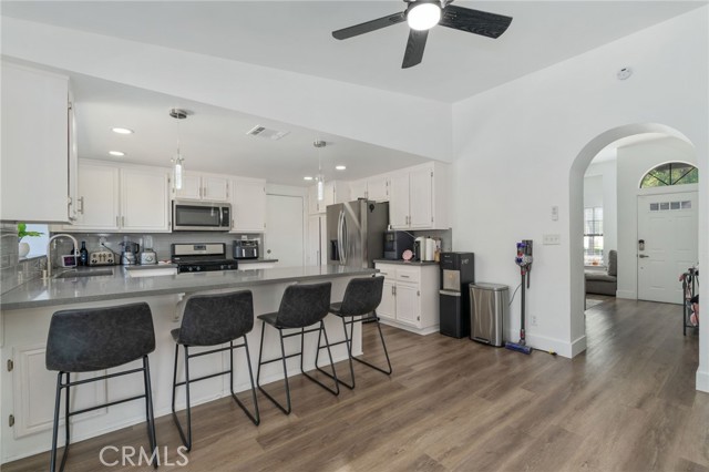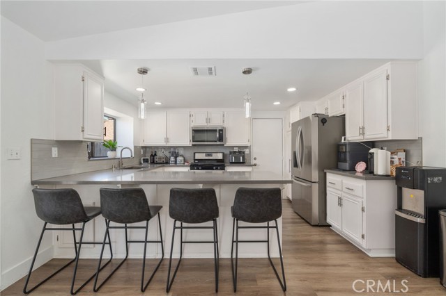 Priced to sell! This beautifully remodeled home is full of charm and modern touches throughout. The versatile layout offers a bonus 4th bedroom plus a private 1 bed / 1 bath additional living space with its own kitchen and split A/C—ideal for extended family or rental income. Inside, you’ll find new flooring, recessed lighting, and a smart thermostat. The kitchen shines with all-new cabinets, sleek countertops, and a stylish tile backsplash. Additional upgrades include a brand-new exterior water heater. The spacious front patio is perfect for entertaining, and the backyard is ready to be transformed into your dream outdoor retreat.