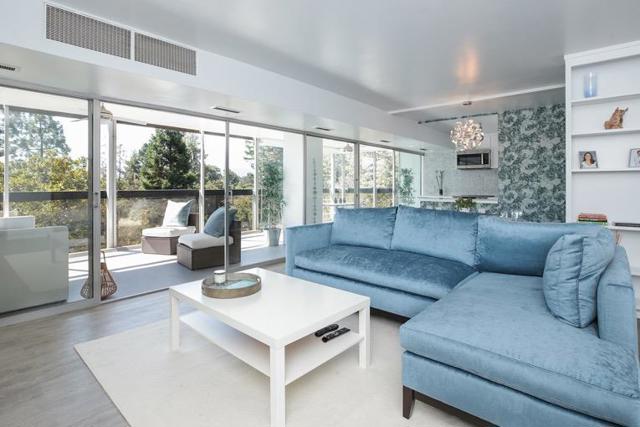 Enjoy breathtaking views from this unique offering that combines modern luxury with an urban setting and 5-star amenities perfect for starting out, downsizing, or a pied-Ã-terre for Silicon Valley living. Just three blocks to University Avenue and Caltrain, the fifth-floor corner condominium has been transformed with chic modern style. With 2 bedrooms & 2 bathrooms, the streamlined design of this 1,216 SF home unfolds with a crisp white palette complemented by hardwood floors, accent wall coverings from London, and dazzling patterns of Carrara marble mosaics in the kitchen and bathrooms. A tremendous covered lanai offers fresh-air living while in-unit laundry and secure parking add the ultimate convenience for urban living. Topping it all off are concierge service, fitness center, club room, and pool plus incredibly close to vibrant downtown Palo Alto and Stanford Shopping Center.