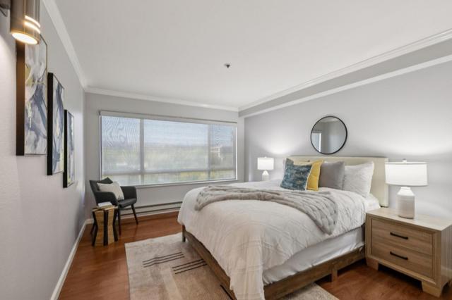 Discover refined modern comfort in this thoughtfully renovated home at 410 Sheridan Ave. This top-floor unit offers picturesque views of the foothills and seamlessly blends style, comfort, and convenience within a sought-after complex. Highlights include wood flooring, custom cabinetry, built-in appliances, natural stone countertops, and designer glass tile in the bathroom. The gourmet kitchen, adorned with white cabinets and stainless steel appliances, complements the convenience of in-unit stacked laundry. The primary bedroom features customized closets, while the dining area illuminated by a large window and a glass door opening to an airy balcony -- welcomes abundant natural light. Building amenities include an elevator, a heated swimming pool, a meeting room, and secure underground parking with assigned spaces. This prime location offers easy access to a year-round farmers market, top-rated dining, cafes, grocery stores, Caltrain, and Stanford University. Children may attend acclaimed schools such as Greene Middle and Palo Alto High (buyer to verify eligibility)