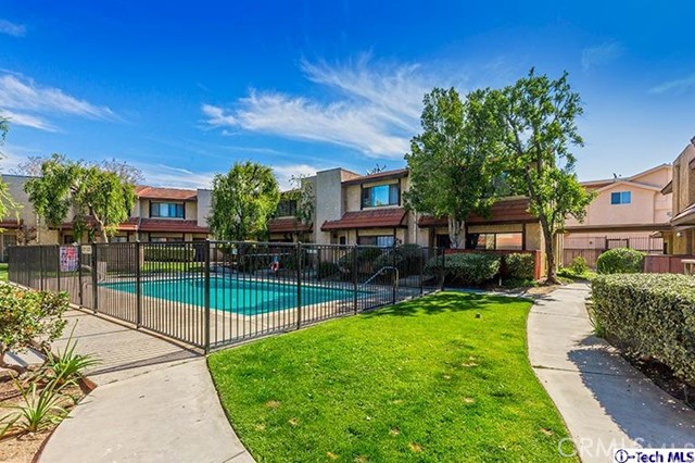 Amazing Value!!! Kids Bring your Parents to this Beautiful Secured Comfortable Townhouse. Move-in Condition 3BR/2BA End Unit overlooking the Huge Sparking Community POOl. Shiny Laminate Floors Downstairs & Soft/thick Carpets in all Bedrooms. Huge Bright Master BR w/ Own Bath & High Ceiling; Walk-in & Mirrored Closets. Brick Fireplace in L.R. w/ Sliding Door Access to Spacious Front Patio. Central A/C & Heat; Washer/Dryer Hook-ups. Two Car Attached Garage w/ Direct Access. Wide Plummer Street - Walking Distance to Bus Stops. Easy Access to Fwys: 5/170/405 & 210. Don't Delay...Call Today!!!