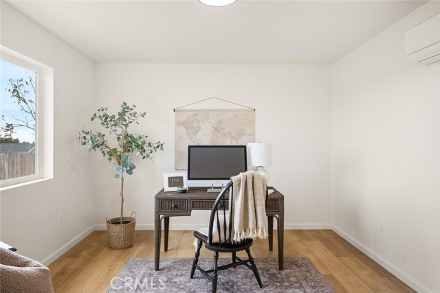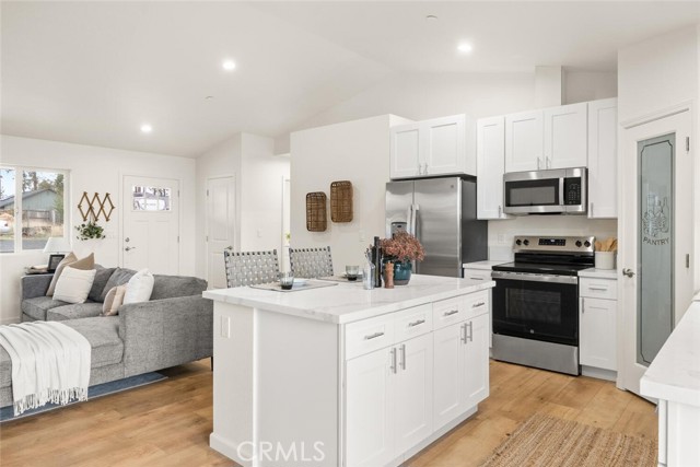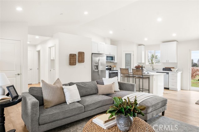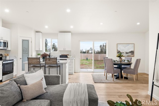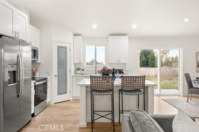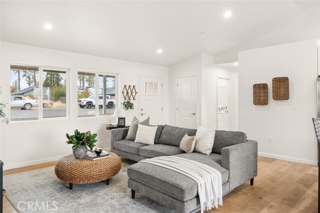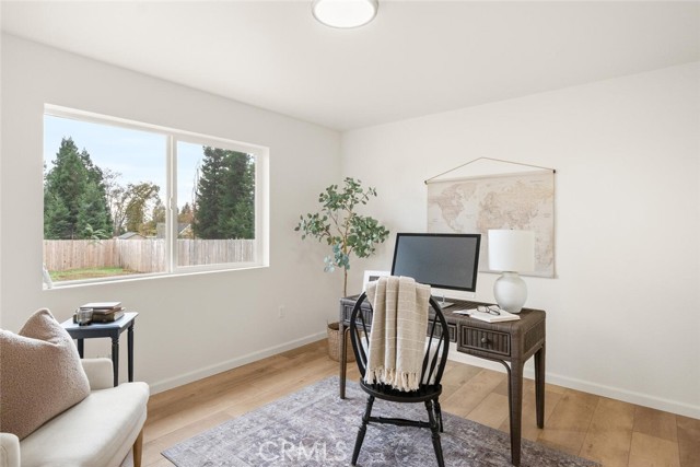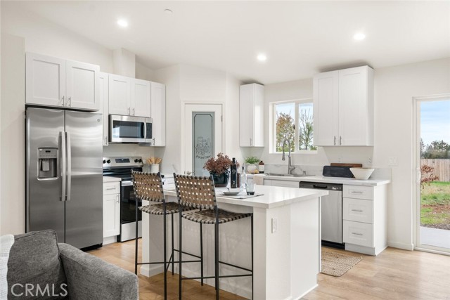 This brand new construction home located on the Eastside of town is situated on over a quarter acre, with 2 bedrooms, 2 bathrooms plus a den. The main living space has warm luxury vinyl plank flooring and a vaulted ceiling with recessed lighting that is open to the kitchen. The kitchen has a spacious island, bright white custom cabinets, a walk-in pantry, quartz granite counters, and stainless steel appliances. The master bedroom is roomy with a walk-in closet and an en suite bathroom with a dual sink vanity, tile floors, and a tile shower. There is a bedroom located near the master while the den is off the kitchen making this space perfect for an office or extra sitting room. The guest bathroom features a tub, tile floors, and large vanity. There is an indoor laundry room, ductless mini splits for energy efficiency, and an oversized owned solar system. Outside, you have plenty of space for activities in the fully fenced backyard and RV parking in the front. The street is very quiet and private so you can sit on the darling front porch and enjoy the peace and tranquility that this side of town has to offer! Come swoop this one up and call it home!