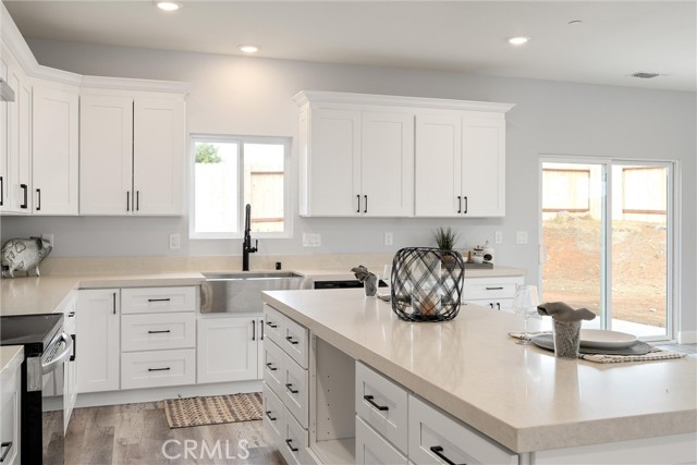 Check out this beautiful new build that perfectly blends modern design and functionality! The open floor plan creates an inviting atmosphere, ideal for family gatherings and entertaining. The bright and airy kitchen is a chef's dream, featuring sleek stainless steel appliances, a massive island with pristine white quartz countertops, and soft-close cabinetry. Adjacent to the kitchen is a cozy office nook with a built-in desk—perfect for work or a quiet coffee corner. Luxury vinyl plank flooring flows throughout the home, enhancing its beauty and ease of maintenance. The spacious bedrooms provide a peaceful retreat, and the master suite offers a generous walk-in closet for ultimate convenience. With tons of storage throughout, you’ll have plenty of room to keep everything organized. The indoor laundry area is a dream come true, with a large folding table and ample cabinetry for storage. Outside, the large yard offers endless possibilities! Whether you dream of RV parking, adding a shop, or installing a pool, there’s plenty of space to make it happen. This move-in ready home is the perfect blend of comfort, style, and convenience. Don’t miss the opportunity to make this gorgeous house your home