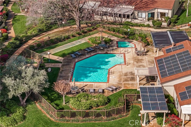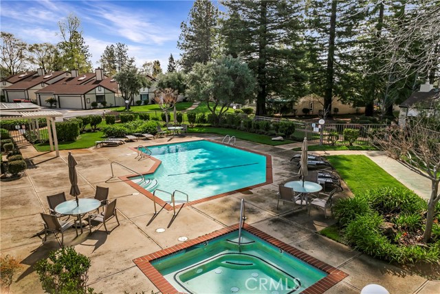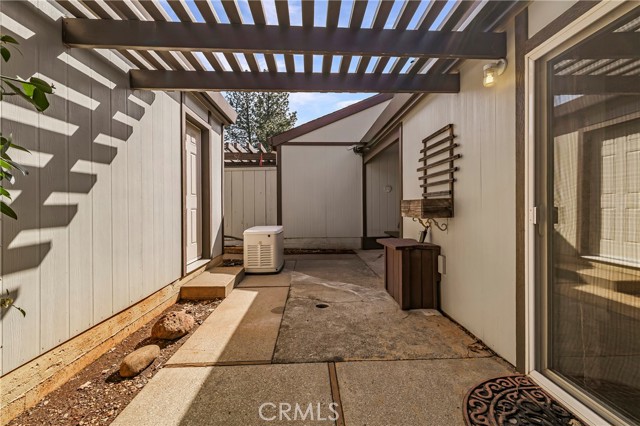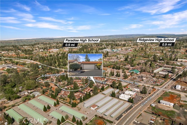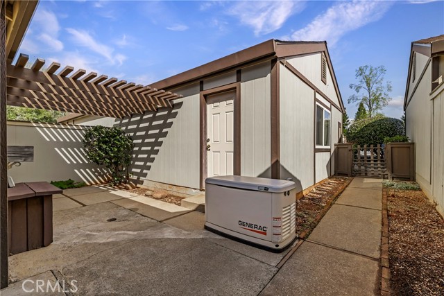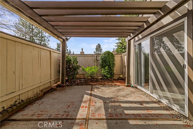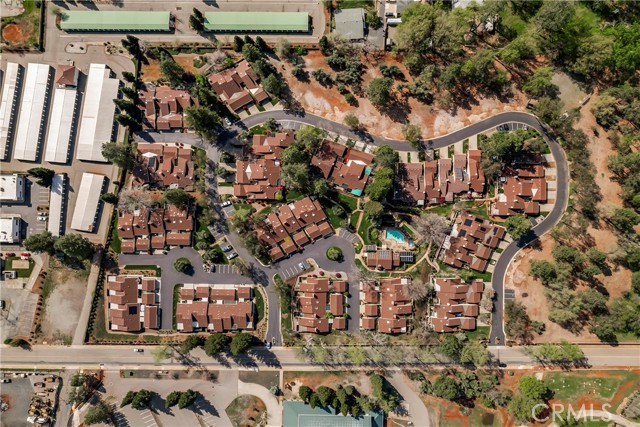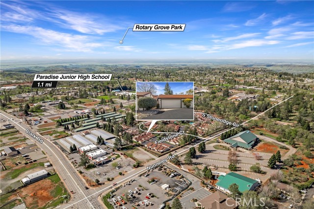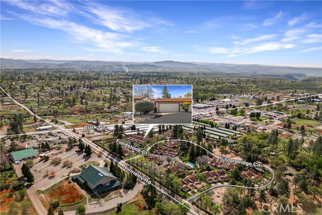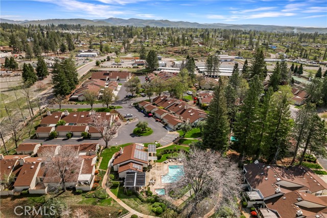 Welcome to the Stoneridge Townhouses! A hidden gem in the heart of Paradise, located directly across the street from the Paradise Performing Arts Center. Passing through the park-like setting and well-maintained homes, you certainly feel there is pride in ownership amongst this community. This 2-bedroom 2 bath home with 1298 square feet is ready for a new owner. This home offers newer dual pane windows throughout, interior paint and a newer Generac whole house generator. The front courtyard offers a newer Aluma wood trellis cover and concrete patio. Upon entry you arrive on tiled floors overlooking the living room, dining room and kitchen. The living room has a free-standing wood stove resting on a brick hearth and stone walls to the ceiling. The dining room offers a nice slider to the front courtyard. The kitchen offers tiled counter tops, 5ft. breakfast bar, newer fixtures, painted cabinets, refrigerator and free-standing oven/range. The Spacious Primary bedroom offers a slider to the back patio and the primary bath offers two mirrored closets, solid surface vanity, skylight and a step-in shower with rain glass sliding doors. The guest bedroom offers French doors into the living room, closet and a slider to the back patio. The guest bath offers solid surface counters, skylight and a tub/shower combination. Th large laundry room offers lots of cabinets and a Kenmore washer and Dryer are included. The 2-car garage is oversized. Plenty of storage space and a workbench. This community also has a clubhouse, pool and spa. Fantastic amenities for family gatherings. Central Paradise Location.