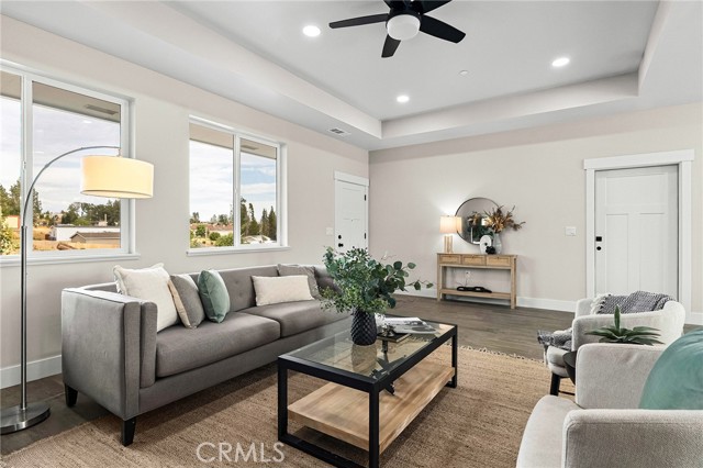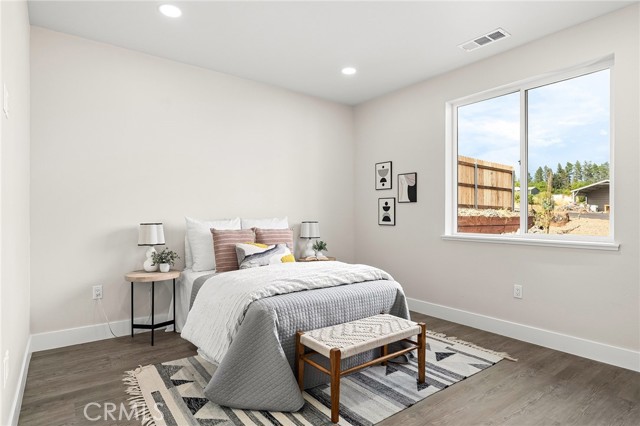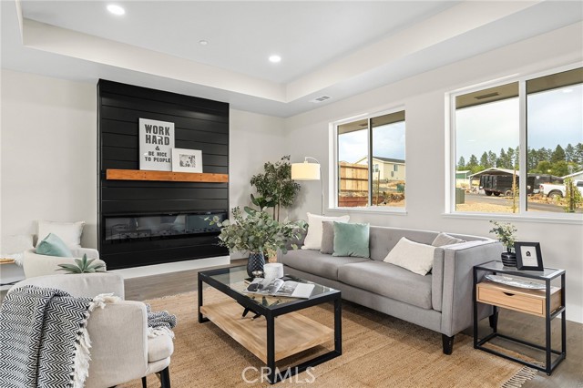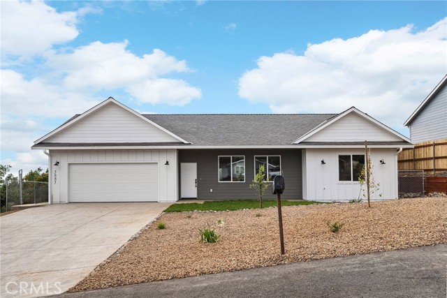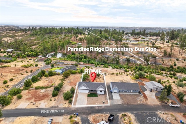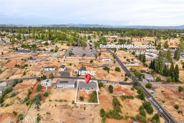 Welcome to 5885 Pine View, a beautifully crafted new construction home by local builder American Dream Construction. This 3-bedroom, 2-bathroom home blends comfort, style, and quality workmanship. Inside, tray ceilings and a stunning electric fireplace anchor the open-concept living space. The kitchen features a unique L-shaped island, ample storage, and a corner pantry. The split floor plan places the spacious primary suite on one side, offering privacy and tranquility. The luxurious primary bathroom includes a wetroom design with a soaking tub and frameless glass-enclosed shower. Both bathrooms feature tasteful tile finishes, and one guest bedroom has a walk-in closet. Natural light fills the home, with sunset views from the backyard. The front yard is landscaped and irrigated, with stamped concrete walkways and driveway. The fully fenced backyard is cleared and ready for your personal touch. Additional features include a laundry room, 2-car garage, and energy-saving 3.66kw OWNED solar system installed prior to closing. American Dream Construction is one of the few builders in Paradise committed to constructing fully wildfire-compliant homes that exceed today’s fire safety standards. Homes feature 5 feet of defensible space with non-combustible materials, Class A fire-rated roofing, non-combustible gutters and downspouts, Vulcan ember-resistant vents, and fiber cement siding. “Plus†wildfire preparedness includes enclosed roof eaves and soffits, metal gutter guards, tempered dual-pane windows, non-combustible exterior doors, and forced exhaust vent materials. These details aren’t just features—they’re peace of mind, safety, and resilience. On top of the standard 1-year fit & finish warranty, the seller is offering an additional 6-month extension. Pine View Drive was recently repaved for a smooth approach. Conveniently located two minutes from the Skyway, commuting to Chico or anywhere in town is easy. Nearby amenities include Paradise High School, Paradise Junior High, Terry Ashe Recreation Center, Paradise Community Park, Bille Park, and local favorites like Nic’s, Barney’s, and Ridge Top Ice Cream Parlor. Come see the quality, comfort, and charm for yourself! Not to mention, SageSure quoted this property under $1800/yr - NO CA FAIR PLAN NEEDED!