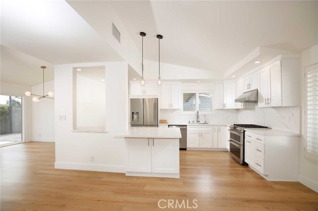 JUST REDUCED!!! Tremendous value on this Mid-Century classic home in an idyllic, pastoral setting in the sought-after San Rafael Hills area of Pasadena. Located on a tucked-away cul-de-sac, this home has been beautifully remodeled for both comfortable and gracious living. Inside, the home enjoys beautiful wide plank flooring throughout. The living room is fully open to both dining area and kitchen. The light & bright living room enjoys vaulted ceilings oriented to the outdoors and anchored by a fireplace with stone surround and mantel. Adjoining dining area features custom chandelier and sliding glass doors overlooking the patio. The kitchen was lovingly remodeled by someone who loves to cook—and you can tell. Beautiful white cabinetry, quartz clad countertops and backsplash, and stainless appliances, recessed and pendant lighting. The bedroom wing includes 3 bedrooms and 2 redone bathrooms, including a master with private ¾ bath. Outside, the patio is beautifully designed with a custom retractable awning for outdoor entertaining.  An attached 2 car garage has direct access. The expansive grounds have been professionally designed and feel sculptural, with drought tolerant plantings and paths that invite you to meander throughout the yard. This yard is framed by hillside, giving a feeling of complete privacy and serenity as you enjoy your new home.