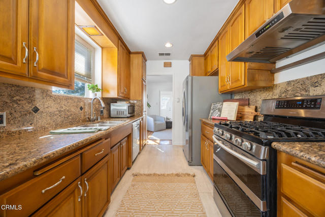 Welcome to this charming 3 bedroom, 2 bathroom Traditional home nestled in a quiet northeast Pasadena location adjacent to Washington Village. Greeted with Oak hardwood flooring and a warm inviting atmosphere, this home truly shines with its dual living areas that offer incredible flexibility for modern family life. The formal living room provides an elegant space for entertaining guests or enjoying quiet moments with a good book, while the expansive family great room serves as the true heart of comfortable and everyday living. This light and bright space is impressively sized with large windows that flood the room with natural light. The kitchen has been updated over time and enjoys an eat-in nook for your morning coffee or casual family meals, while the designated formal dining room sets the stage for memorable gatherings, whether you are hosting holiday celebrations or enjoying everyday meals. The primary bedroom en-suite offers a peaceful retreat with a generously sized spa-like bathroom, while two additional bedrooms are ideal for family, guests, or a home office. An exciting feature of this property is the rear studio guest house! This flexible space is approx. 436 sf., in addition to the homes measured 2,284 sf. Lots of possibilities here! This structure could serve as an art studio for creative pursuits, a fitness room, a home office, or accommodations for visiting family and friends. The original garage still functions as a 1-car garage for parking, plus a workshop for projects and lots of storage! This property also boasts a brand new roof, new attic insulation, dual-pane windows, 200 amp. electrical panel, mostly copper piping, and mature fruit trees that dot the landscape. Conveniently located near local eateries and desert shops, Victory Park, the Metro, Alice's dog park, hiking trails, and Hastings Ranch shopping, come see this special home in a much sought-after location.