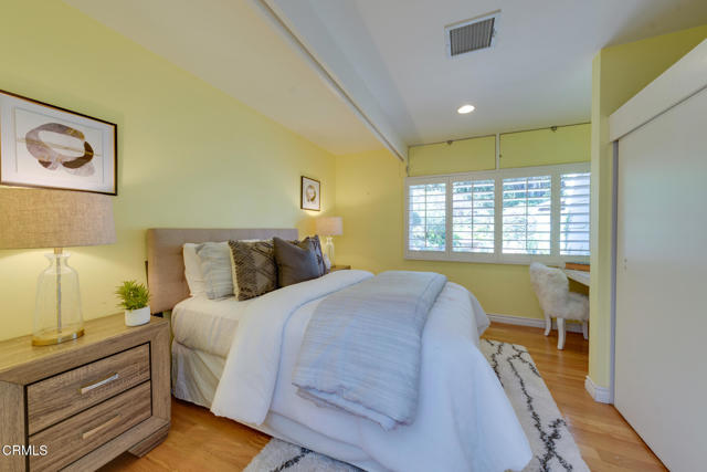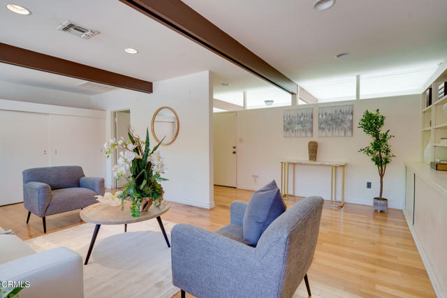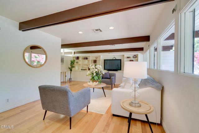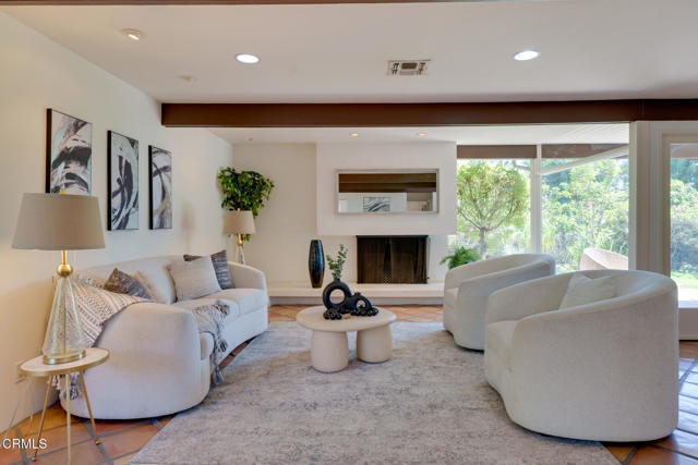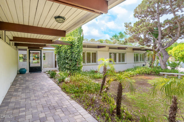Privacy and tranquility define this single-level post-and-beam residence designed by Buff and Hensman. Once owned by the Van Halen brothers, the home beautifully captures modernist ideals with its graceful simplicity and seamless connection between indoor and outdoor spaces. Expansive walls of glass, allowing for natural light in every room, frame stunning views of the treetops and city skyline. The thoughtfully designed floor plan places all bedrooms together in one wing, while the opposite wing features a kitchen and a separate family room with its own closet and full bathroom. A custom stained-glass window completed in 1990 by renowned artist, Judy Jansen, highlights the entry and dining areas. The home has undergone extensive upgrades, including an 800-square-foot addition, a heated pool and spa, updated landscaping, a newer air conditioning -- all while preserving the original Buff and Hensman design and enhancing it with a more contemporary interior style. First time on market in over 30 years! A rare opportunity to customize this historic home offering endless possibilities.ADDITIONAL FEATURES:Private cul-de-sac road with only 5 houses,Views of Eaton Canyon Golf Course and mountains, Newer paved pool deck, Wood burning fireplaceExtra bonus/storage room, Viking stove/oven in kitchenIndividual laundry room, Stained glass build in 1990 upon sellers special order by renowned artist, Judy Jansen, collaborating with Buff and Hensman in many of the houses they designed, Heated pool and spa (recently re-plastered), Automatic driveway gate, 2 air and heat units-recently replaced, Newer tempered glass in large windows and sliding doors, Security shutters and plantation shutters;