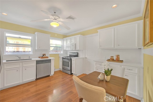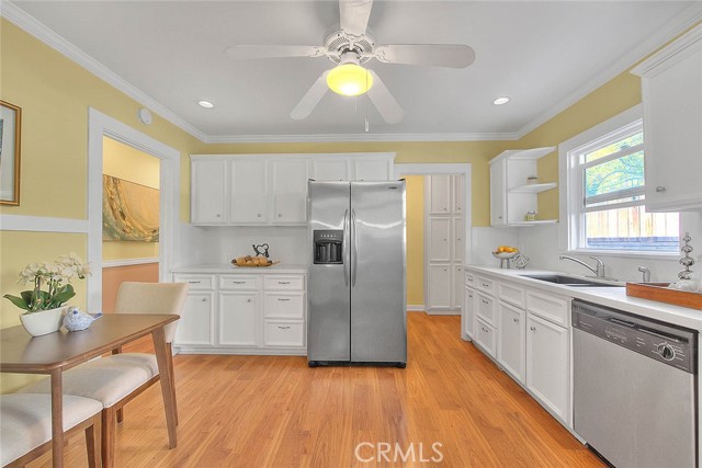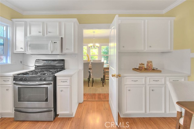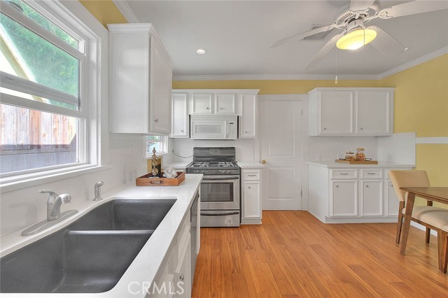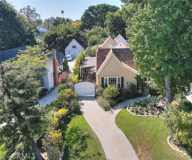 Exquisite single-level English Tudor-Style located in Pasadena's prestigious Caltech neighborhood and San Marino-adjacent area, offering timeless charm and refined living. First time on the market in decades. Cozy living room with abundant natural light streaming through the large French window. The formal dining room, just off the living area, also enjoys bright windows, creating a warm and welcoming setting. 3 comfortable bedrooms with ample closet space and natural light, providing restful retreats. 2 updated bathrooms (per Title 1 bathroom) featuring white quartz walls, the primary suite offers a glass-enclosed shower, the other with a soaking tub, both complete with tile flooring. The gourmet kitchen offers ample quartz countertops, custom cabinetry, and stainless-steel appliances. Combined laundry/pantry area off the kitchen. Updated laminate hardwood flooring and vinyl double-pane windows throughout. Recessed lighting with dimmer switches. The property is graced with mature lemon, grapevine, and fig trees, complemented by lush plantings of roses, Jerusalem sage, lavender, bougainvillea, ivy, and ferns. Private driveway with motorized gate. Spacious and private backyard with tall fencing and a redwood enclosed patio for relaxation and outdoor enjoyment. Bonus room (not included in living sq ft..) adjoining two-car garage offers multi-purpose use and ADU potential. Conveniently close to restaurants, shops, grocery stores, CVS, museums, and much more, a few blocks from the Rose Parade route and Huntington Gardens. Enjoy this beautiful home!