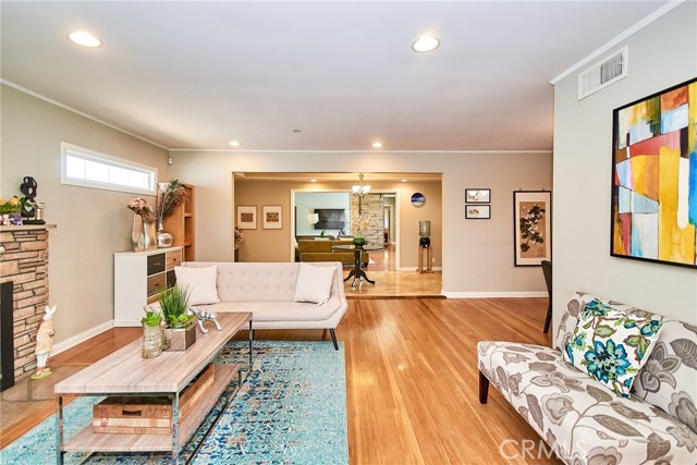 784 Eaton Drive in Pasadena is a beautifully remodeled and expanded single-story 5-bedroom, 3-bathroom home in the sought-after Daisy Villa neighborhood. Originally built in 1947, a major 2015 addition and full renovation expanded the home on a generous 12,223 sqft lot. Upgrades include paid-off solar panels, dual-pane vinyl windows, and wood flooring throughout. A welcoming foyer opens to a bright living room with a cozy fireplace, while the chef’s kitchen features granite countertops, stainless steel appliances, a breakfast bar, custom cabinetry, and a charming garden window. The front wing offers a junior en suite, two additional bedrooms, and a full bath. The addition includes a spacious family room with a large bifold glass door opening to the backyard, a fourth bedroom, and the primary suite—complete with ample closet space and an updated bath. All bathrooms are tastefully renovated. A gated driveway leads to a detached 3-car garage, with an ADU design concept plan for a future unit—ideal as an in-law suite, guest quarters, or rental income. Conveniently close to the 210 Freeway, Whole Foods, Trader Joe’s, The Home Depot, Amazon Fresh, Target, Sunnyslope Park, and Gwinn Park. The backyard offers a serene setting for entertaining, gardening, or relaxing with beautiful mountain views.