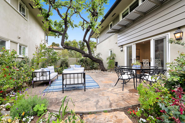 This wonderful spacious ground floor unit is in one of S. Orange Grove most desirable complexes Grosvenor Square. This condominium is set back from the street in the quite corner of the complex, featuring 2 bedroom, den and open floor plan and formal dining room which leads to the private patio. Custom built in, hardwood flooring, updated bathrooms and kitchen are just some of the charms of the unit. The patio has just been replanted and gardening lighting added, the complex ground are well maintained spacious with many green belts. The complex has a pool with barbeque and kitchen area for ease and comfort for summer enjoyment. This unit has abundant storage, with cabinet over carport and basement storage