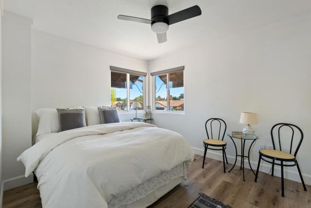Welcome to this beautiful updated 3 bed, 2.5 bath home located on the golf course in Paso Robles. The living room is light and bright with vaulted ceilings, vinyl plank flooring, and a fireplace. An entertainers kitchen with white shaker style cabinets, soft close drawers, a farmhouse sink, quartz countertops, subway tile backsplash, pot filler and updated stainless steel appliances and a breakfast bar. The landscaped backyard backs up to hole 3 and offers a built-in pergola, a hot tub and timed evening lighting. Half bathroom and laundry room with custom bench seating, cabinets and a barn door are located downstairs. The primary suite is upstairs with a custom accent wall, vaulted ceilings, private balcony overlooking the golf course and its own primary bathroom. Inside the primary bath you will find a custom walk-in closet with plenty of storage and double vanity with a dual head walk-in shower.