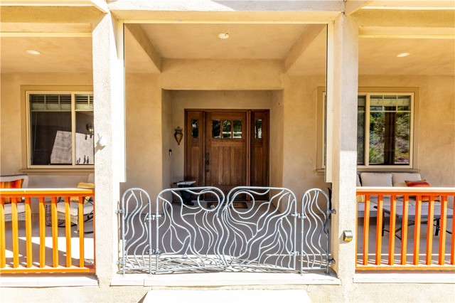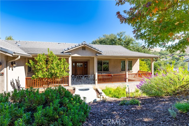 Custom-built, luxurious single-level home situated in the sought after gated community of Riverview Estates at Lake Nacimiento, part of the desirable Heritage Ranch community. This exceptional property showcases breathtaking panoramic views from almost every room across its 1.2-acre setting surrounded by natural beauty. Designed with both comfort and elegance in mind, the open floor plan features high ceilings, expansive windows, and natural light throughout. Below the main level sits an 800+ sq. ft.( not included in square footage listed) guest unit with its own entrance, deck, kitchen, and bath—perfect for guests, multi-generational living or maybe potential income? There is double gated entry on side of home for access to backyard. The gourmet kitchen boasts custom cabinetry, granite countertops, abundant storage, and high-top bar seating that opens to the dining and living areas—ideal for entertaining. The family room centers around a granite fireplace, complemented by a separate living room, office with built-ins, and a hallway lined with storage. The oversized primary suite offers a peaceful retreat with a sitting area, stunning views, and a spa-inspired bath with a walk-in closet. Additional highlights include a full-size laundry room, utility room, and a 3-car garage. A true bonus is the nearly 1,000 sq. ft. workshop and hobby room—ideal for projects, storage, or a potential wine cellar—with a garage door and side access for off-road toys, tractors, or golf carts. Enjoy seamless indoor-outdoor living with 2,000 sq. ft. of newer Trex decking and a pergola extending from the family room. The front porch with retractable screens overlooks lush landscaping. The fully fenced backyard (property actually extends beyond the fence line) offers majestic oaks, grapevines, fruit trees, and open space ideal for a large pool. A new stamped concrete area and outdoor shower add the perfect finishing touch. As part of Heritage Ranch, residents enjoy resort-style amenities including a private boat launch and marina, campgrounds, pickleball and tennis courts, swimming pools, and miles of hiking and biking trails. This full-service community also offers a fire station, restaurants, grocery store, nail and hair salon, and a K–8 school. Many residents enjoy getting around by golf cart to take advantage of all the amenities. Located just 20 minutes from Paso Robles, 40 minutes from the beach, and surrounded by wine country.