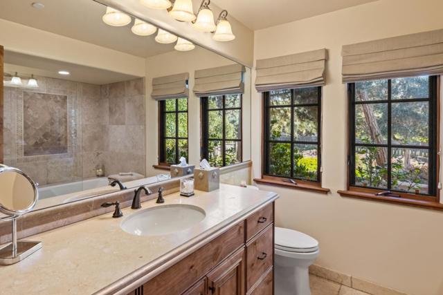Welcome to 3116 Bird Rock Road, a stunning Mediterranean-style home in the heart of Pebble Beach. This elegant sanctuary, close to the ocean, trails, and MPCC, greets guests with a private gate, lush landscaping, and a grand entryway. Inside, the open floor plan offers ample space for entertaining. The ground floor features three bedrooms, while the luxurious owner's suite upstairs boasts an oversized bedroom, a large bathroom, a walk-in closet, a private balcony, and an adjoining den. With approximately 3,600 square feet of living space, this home includes a gourmet kitchen equipped with a full suite of Viking appliances, a cozy family room, a large living room, and a spacious dining area perfect for large gatherings. Three fireplaces add warmth and charm throughout the home while wine enthusiasts will appreciate the temperature-controlled wine cellar. The expansive deck on the first floor is ideal for entertaining, with a fire pit, views to the golf course and ocean, and a large dining island. Whether you're hosting a gathering or seeking a peaceful retreat, this home offers the perfect blend of luxury and comfort.