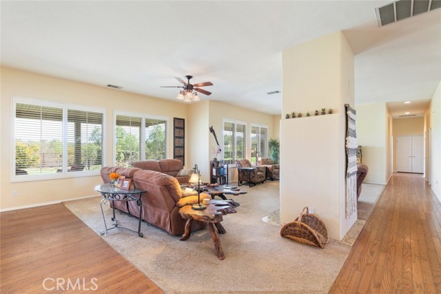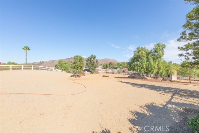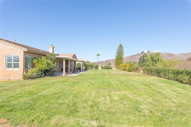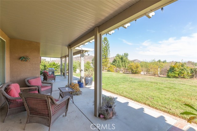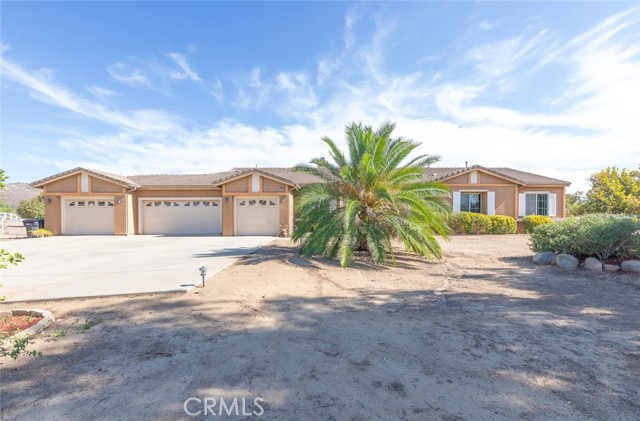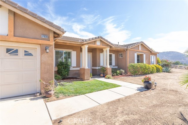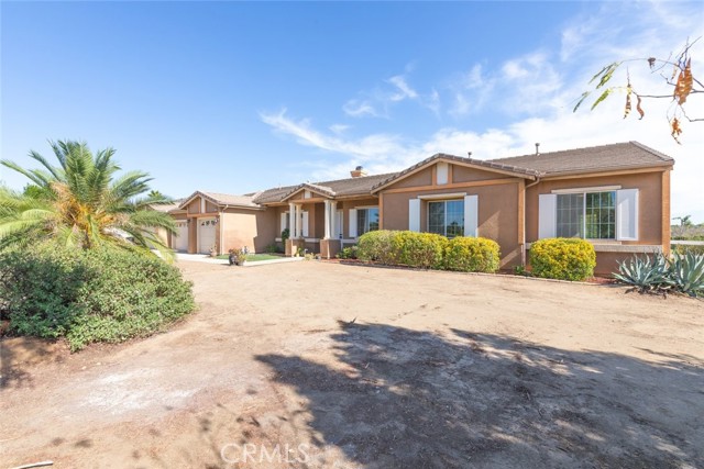 Tucked away in the peaceful community of Gavilan Hills, this charming single-story home sits at the end of a quiet cul-de-sac and offers the privacy and open space you’ve been searching for. A long, tree-lined driveway welcomes you in and sets the tone for the serenity and seclusion that this property provides. With a large, usable lot, there is plenty of room to create your dream outdoor oasis—add a pool, an ADU, horse facilities, or all of the above. The possibilities are endless. Step through the double door entry into an open-concept floor plan filled with natural light. The spacious kitchen features granite countertops, stainless steel appliances, a kitchen island with breakfast bar and sink, plus a built-in wine rack and wine fridge—perfect for entertaining. The warm wood flooring combined with comfortable carpeting in the bedrooms creates a welcoming and relaxed atmosphere throughout. The primary suite is generously sized and offers a huge walk-in closet, providing plenty of storage and comfort. In the backyard, unwind under the alumawood patio cover while taking in the expansive, picturesque views of the surrounding hills—an ideal setting to enjoy morning coffee, evening sunsets, and gatherings with family and friends. Have horses or recreational toys? This property can easily accommodate your horses, RV, boat, trailers, and more, with room to build out your ideal setup. Experience country living without sacrificing convenience—this home combines space, peace, and lifestyle in one beautiful package.