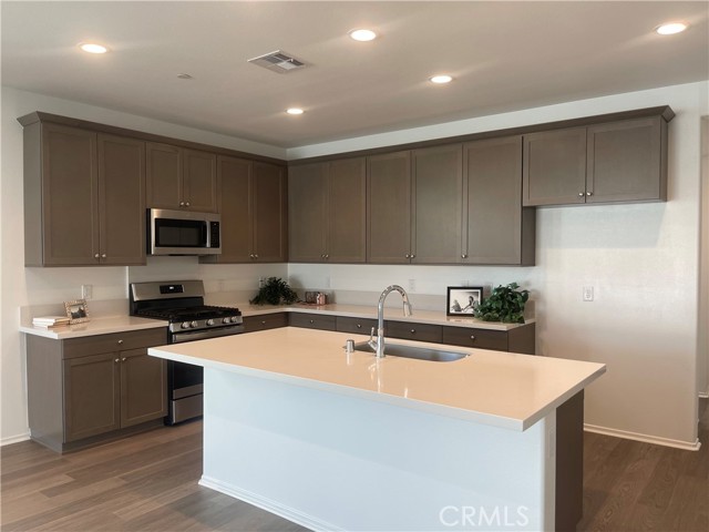 Single story cul-de-sac home offers 4 Bedrooms and 2 Baths. 10' Center meet slider at the Great Room. Ceiling fan pre-wired in Great Room and all bedrooms. Upgraded Light Grey kitchen cabinets and Quartz counter tops and backsplash. Wood laminate flooring in all living areas, tile floors in bathrooms and laundry room, upgraded carpet & pad in all bedrooms and closets. Walk-in closet at Owner's Bedroom. Garage service door. Outdoor Covered Patio with Ceiling pre-wire and recessed lights. Gas Stub at Patio for future BBQ. Homeowners will appreciate easy access to 215 freeway, State Route 74 and South Perris Metrolink Station, as well as shops and dining at Perris Crossings Shopping center. This home is estimated to be move-in ready the last week of June. Come on out and tour!