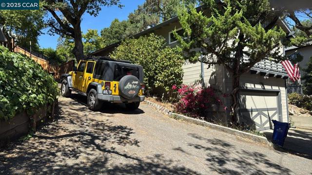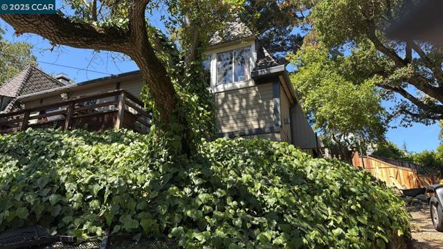 Looking like an alpine cabin, a small cottage nestled up with the trees above the street. Vaulted wood ceilings add charm to this cozy cottage. This cottage has wood floors, a cozy fireplace, and a private patio with lots of room to wander about. Close to one of the best schools in the area, Close to Montclair Village, Parks, and shops. One minute from the freeway and downtown everywhere. Gorgeous, gorgeous all the way around.