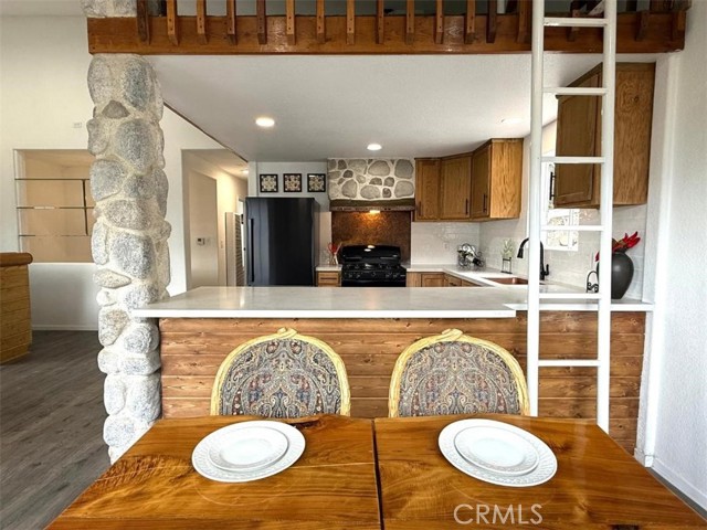 Private Retreat with Incredible Views and Greenbelt Location Tucked away in the scenic and sought-after community of Pine Mountain Club, this beautifully updated 2-bedroom, 2-bath home blends modern style with cozy mountain charm. Set against a backdrop of wide-open views and bordering protected greenbelt space, the home offers exceptional privacy and a true connection to nature. The upper level is the heart of the home, featuring an open-concept kitchen, dining, and living area with vaulted ceilings, abundant natural light, and a wood-burning fireplace. A fixed metal ladder leads to a versatile loft—perfect as a reading nook, creative space, or hideaway for guests. Entertain with ease at the built-in wet bar, or step out onto the full-length deck and take in the serene mountain and forest views—with no neighbors in sight. The kitchen stands out with quartz countertops, custom natural wood cabinetry, a copper farmhouse sink, and striking hammered copper details on the stove hood and backsplash. Both bathrooms have been stylishly updated with modern fixtures, grey tile, and sleek vanities for a clean, contemporary feel. The primary suite includes a second wood-burning fireplace, offering a cozy retreat on chilly evenings. Downstairs, you'll find the main entry, laundry area, and extra storage space. A concrete driveway provides ample parking. As a Pine Mountain Club resident, you'll enjoy access to amenities such as a 9-hole golf course, tennis courts, swimming pool, clubhouse, equestrian center, and miles of hiking and biking trails throughout the Los Padres National Forest. Whether you're looking for a full-time residence, weekend getaway, or a peaceful escape from city life—this home delivers the ideal mountain lifestyle.
