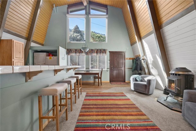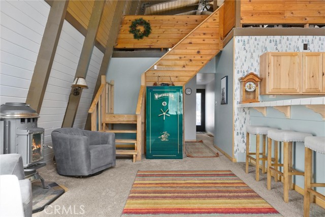 Tucked at the quiet east end of town, where the road narrows and the forest deepens, this classic gambrel cabin feels like something out of an old mountain story. Step inside and you’ll find warm wood tones, vaulted ceilings, and that unmistakable cabin scent of pine and earth. The open living area centers around a pellet stove—perfect for slow mornings or nights when the wind moves through the trees outside. Two bedrooms and a full bath sit on the main level, while upstairs, a spacious loft waits to become whatever you need it to be: a writer’s hideaway, a second living space, or a place for guests to stretch out after a long hike. Outside, a large front deck catches the afternoon sun, while the back deck looks out toward the trees and a seasonal creek that winds along the edge of the property. Beyond that—nothing but open greenbelt that leads straight into Los Padres National Forest. Beyond your doorstep, life here stretches wider than any single home. Membership in the Pine Mountain Club Property Owners Association opens a world of trails, tennis, pickleball, golf, poolside summers, fishing at Fern’s Lake — even an equestrian center. When the snow falls, roads are cleared, patrols keep watch, and neighbors quietly look out for one another. It’s quiet here. Peaceful. The kind of cabin that doesn’t try too hard—just stands ready for weekends of solitude, firelight, and the sound of water at the edge of your land.