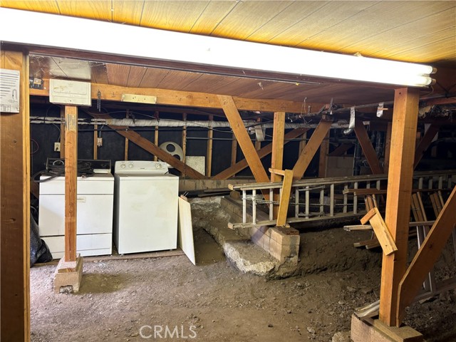 Mountain cabin located in a private setting tucked back from the street surrounded by numerous pine trees & natural rocks. Home was built by a Swedish contractor and his son. A-frame design featuring vaulted tongue & groove ceilings, living room that opens onto a side deck, kitchen w/stone counters, breakfast bar w/ newer oven/range & refrigerator. 2 good sized bedrooms on main entry level. One full bath features a medicinal quality whirlpool tub & shower as well as another 1/2 guest bath w/washer/dryer hook up. **PLUS a Huge loft above (not included in stated sq. Footage) that is a perfect multi-use space featuring a large window w/mountain & forest views. Newer flooring-laminate in bedrooms, kitchen & bathrooms, carpet in loft & living room. Small workshop underneath house. Tons of parking & yard space all around. All this!and you can walk to the Pine Mountain Club Village Center & nearby Clubhouse amenities that include an outdoor swimming pool, tennis, golf, equestrian, shops & restaurants. This home & private setting is one you don’t want to miss!