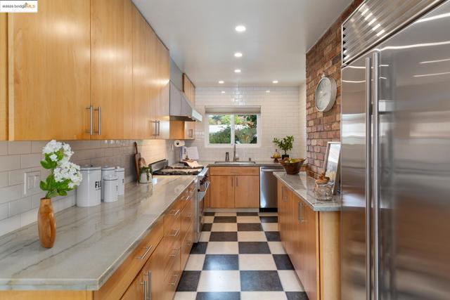 Welcome to this beautifully updated ranch-style home in the desirable Linda Heights neighborhood of Pinole. The single-level floor plan and seamless indoor/outdoor flow make for an easy, active lifestyle. Upgrades abound: a luxe kitchen with quartz counters, Wolf range, and Sub-Zero refrigerator; refreshed bathrooms; modern lighting; and fresh paint inside and out. You’ll also find dual-paned windows, hardwood floors throughout, and a cozy wood-burning fireplace. The outdoor space is a highlight - an oversized lot with patio, lawn, and fruit trees, perfect for gardening, play, and entertaining. Even the garage shines, outfitted with front-loading washer/dryer, a Level 2 EV charger, and sturdy steel shelving. All this in a great location, close to restaurants, cafés, Sprouts Market, Trader Joe’s, Historic Downtown Pinole, and a wealth of nearby recreation options.