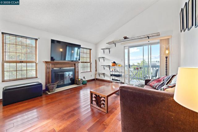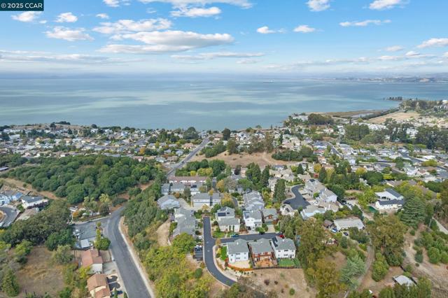 Perched in the heart of Pinole, this beautifully maintained corner Townhome blends comfort, elegance, and panoramic bay views into one exceptional home. From the moment you step inside, you’ll be greeted by sun-filled spaces, vaulted ceilings, and high-end cherry wood floors that exude a sense of warmth that makes this home truly special. The formal living room, highlighted by a wood-burning fireplace and soaring ceilings, opens seamlessly to a west-facing balcony that captures sweeping views of San Pablo Bay—the perfect spot to unwind as the sun sets. The formal dining room and versatile family room offer an ideal flow for both entertaining and relaxed everyday living. Updated kitchen is a showpiece, featuring mahogany cabinets, luxurious countertops with upscale backsplash to match. Upstairs, the primary suite offers breathtaking bay views and a light-filled retreat, complemented by two spacious secondary bedrooms with ample closet space and fresh carpet throughout. With 3 bedrooms and 2.5 bathrooms, this home provides the space and comfort every modern lifestyle deserves. As a desirable corner unit, it offers additional windows, abundant natural light, and plenty of guest parking nearby. Ideally located near Hwy 80, Pinole Vista Shopping Center, and close distance to parks.