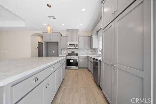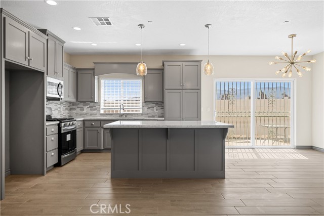 Welcome to this remarkable 2.2± acre horse property in Pinon Hills, offering a peaceful retreat with stunning views of wildlife and snowcapped mountains. This home features a tile roof and a spacious 3-car garage with 8-foot doors, complemented by numerous upgrades.The impressive open floor plan showcases large tile wood-looking floors, a tray ceiling, LED lighting, and tall baseboards. The gourmet kitchen features a huge island, marble countertops, stainless steel appliances, and a beautiful backsplash.This residence includes 4 bedrooms, 2 full bathrooms, and a half bath. Enjoy the convenience of a separate laundry room with quartz counters. The master bathroom is a standout, with dual sinks and a luxurious tile/glass shower with dual shower heads.Additional highlights include a tankless water heater and the property’s location in the award-winning Snowline School District. Experience the tranquility and elegance of this exceptional property!