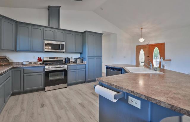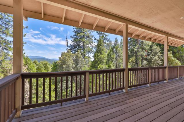 Million Dollar View! Nestled in the Sierra Nevada foothills, on just under an acre, surrounded by nature, this stunning two-level home offers breathtaking panoramic views. Built in 2002 and thoughtfully designed for both comfort and style, this 4-bedroom, 3-bathroom home spans 2,640 sq. ft. of beautifully appointed living space. Step into the heart of the home - a spacious great room that seamlessly blends the entry, kitchen, dining and living areas under soaring high ceilings. Natural light floods the space through expansive dual pane windows. Sliding glass doors on each level open to a generous decks, perfect for entertaining, relaxing, or simply soaking in the majestic scenery. The main level hosts the great room areas along with 2 bedrooms and the primary suite, while the lower level offers incredible flexibility with one bedroom and one full bathroom, and family room / bonus room. This space has private access and is ideal for transforming into a guest suite, separate rental, or an amazing game room, home office, or studio-the possibilities are endless! Whether you're looking for a peaceful full-time residence or a luxurious mountain escape, this home delivers space, style, and serenity in one glorious package just off the highway and a paved driveway!