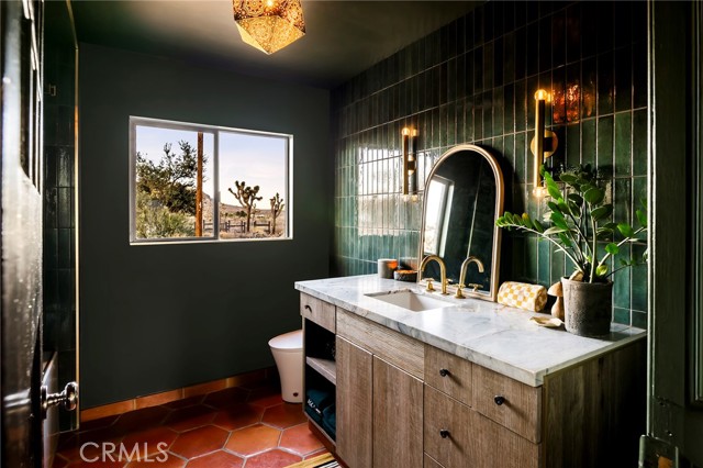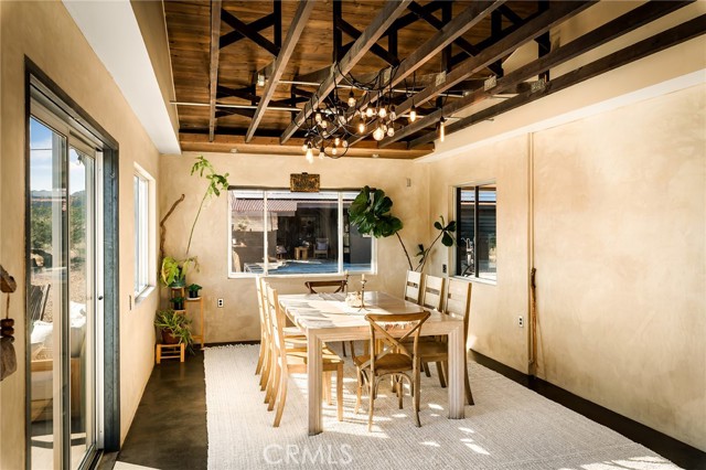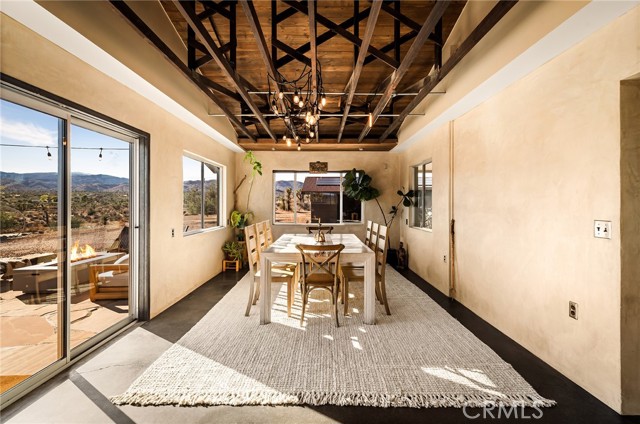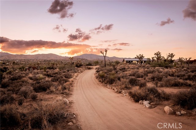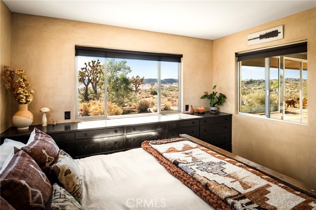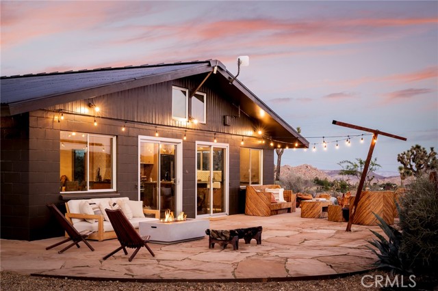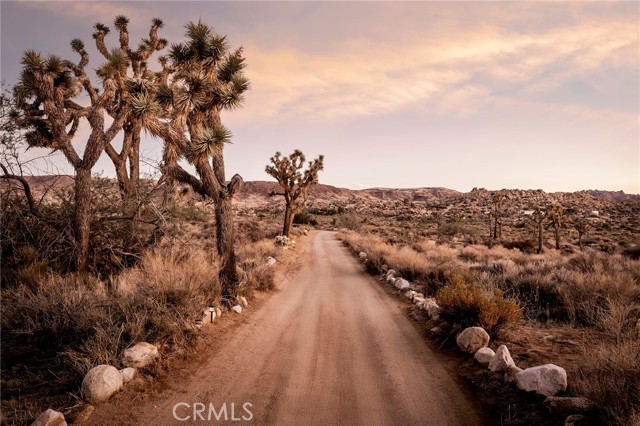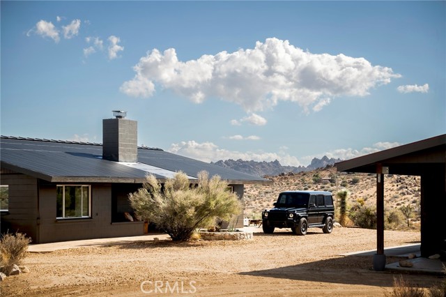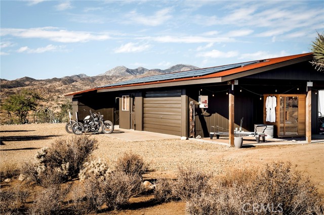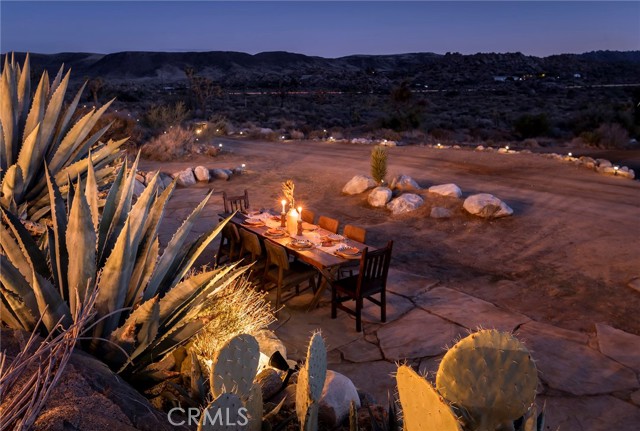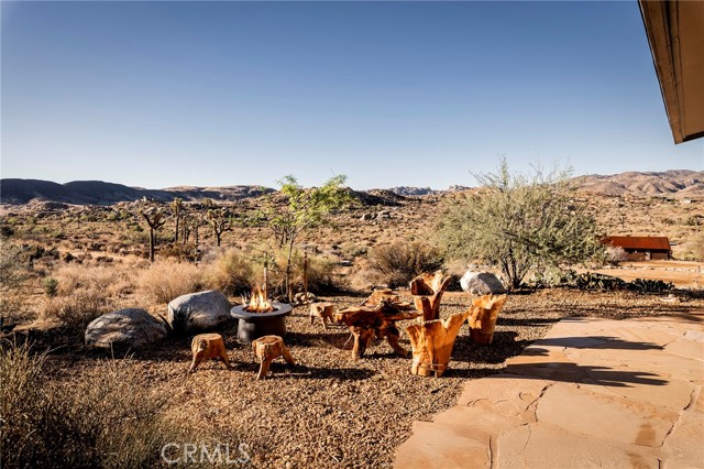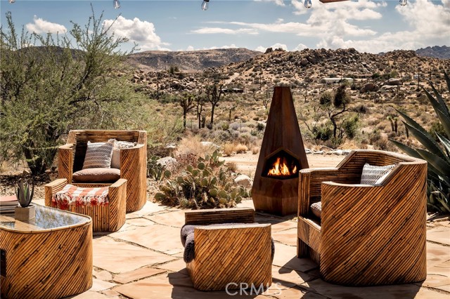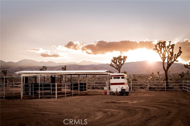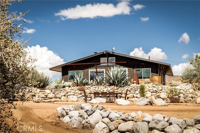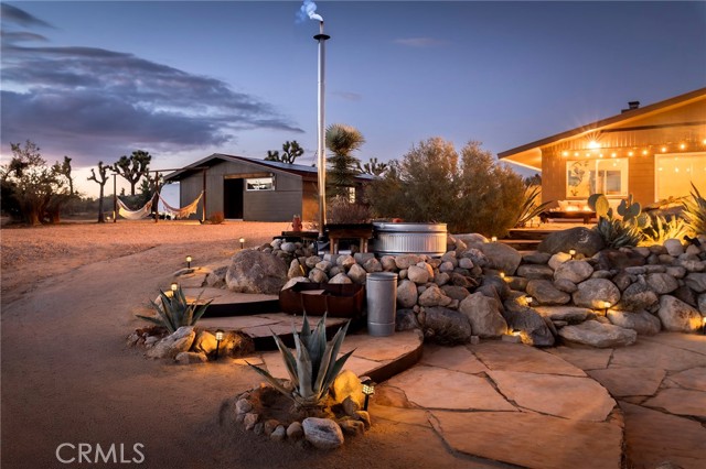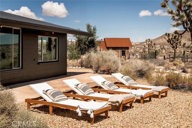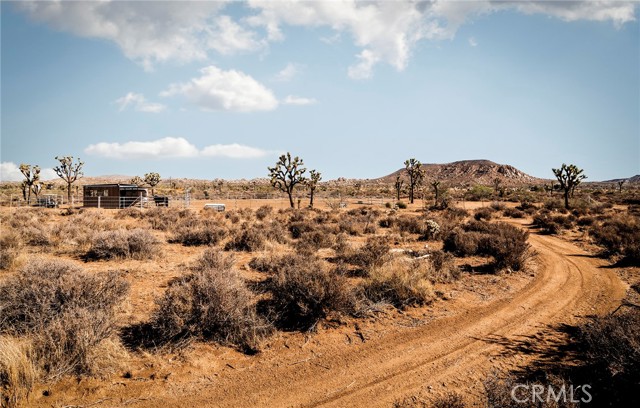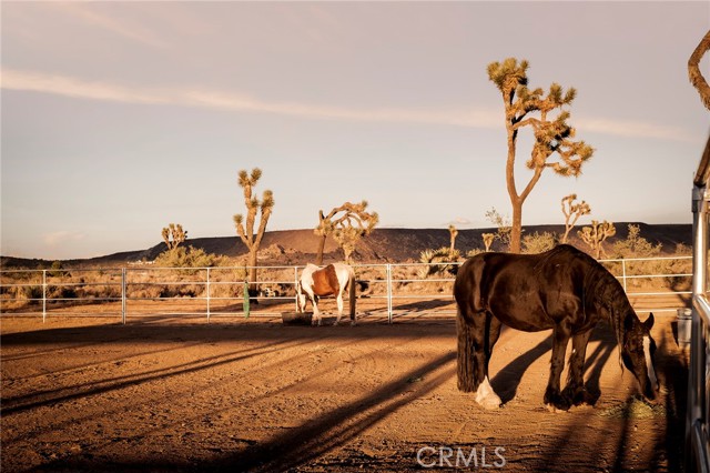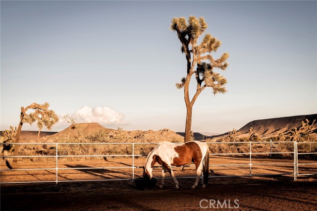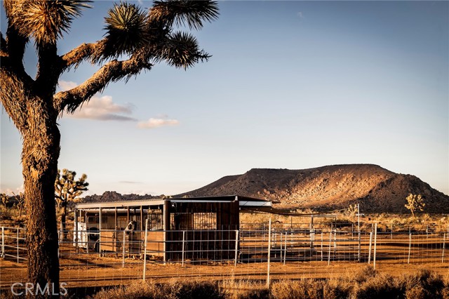 Surrounded by ancient boulders, lava buttes, and panoramic vistas of Pioneertown’s dramatic ridgelines, this 40-acre ranch offers a rare combination of natural beauty, privacy, and convenience, just minutes from Pappy & Harriet’s, Joshua Tree National Park, and the heartbeat of Pioneertown. Every area of the home captures a different, breathtaking view of the surrounding desert and mountains, making the property as inspiring indoors as it is outdoors. Already one year into the subdivision process, the 40-acre parcel is being divided into multiple opportunities: 20 acres encompassing the main house, detached garage with office, original 1932 homestead cabin, and stables, plus one 6-acre parcel and two 7-acre parcels. Easements are in place, and nearby electric poles provide future utility access, making this not only a lifestyle compound but also an investment with substantial upside. The main residence spans 1,527 sqft with 2 bedrooms, 1 bathroom, and a bonus office space located off the 2.5 car garage. Venetian plaster walls, a newly remodeled bath with Italian and Moroccan finishes, and a chef’s kitchen with butcher block island and KitchenAid appliances blend rustic authenticity with modern comfort. A wood-burning fireplace with NuTone blowers and Solar power (while still on-grid) that’s paid for. The original 1932 homestead cabin (313 sqft) serves as a charming 1-bedroom, 1-bath retreat with full kitchen, soaking tub, and dipping pool. Offering flexible options for guests, creative use, or additional income. Outdoor amenities include a cowboy hot tub beneath desert skies, an airplane engine pool, a horse corral, chicken coop with egg-laying hens, a playhouse, bike track, and garden room. This property is as much a retreat as it is an opportunity, a working ranch and a long-term investment poised for its next chapter.