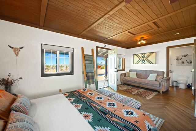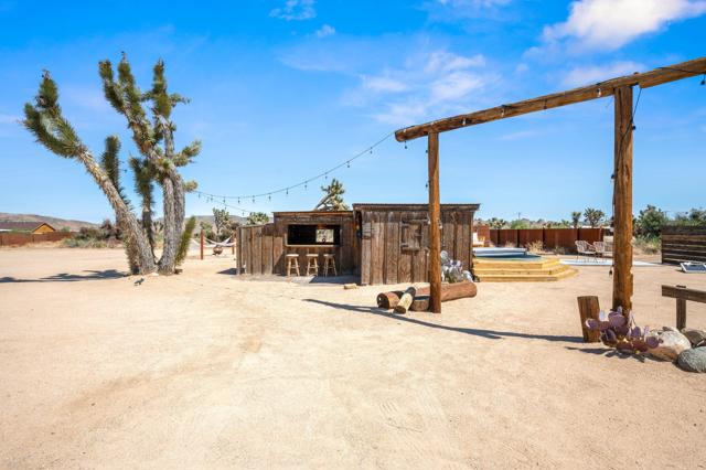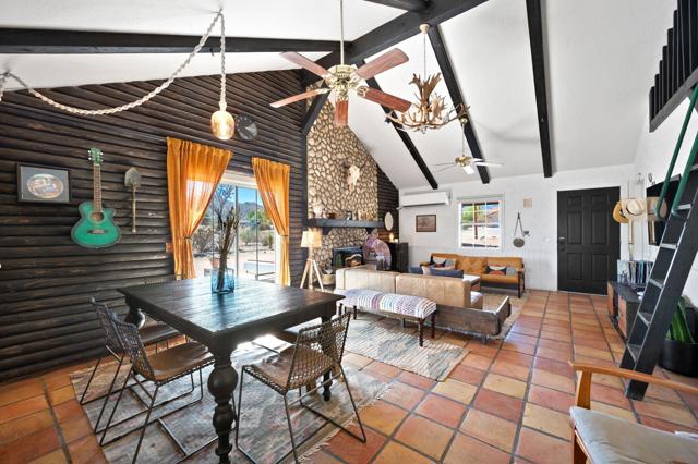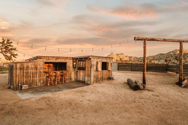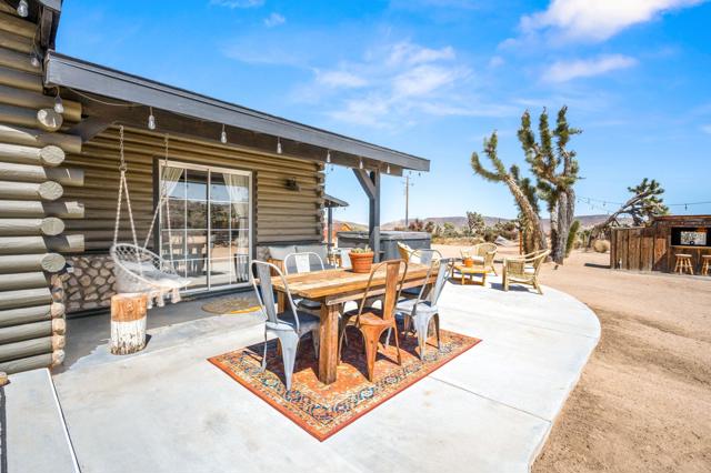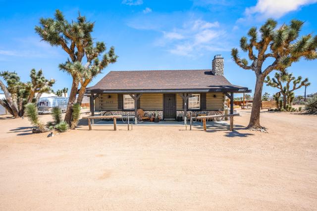 Welcome to the House of Roy, a stunning desert retreat on nearly 1.27 acres is just 3 blocks from iconic Pappy and Harriet's in the heart of Pioneertown! This unique log cabin boasts 3 bedrooms, a sleeping loft, and 3 baths, featuring a romantic jacuzzi tub and towering 20 ft. ceilings. Private porches offer sweeping 360-degree views, while the surrounding landscape includes a hot tub, a cowboy tub, hammock garden, and an old guest house turned speakeasy. Truly a place you have to see to appreciate. Property has been a popular and successful Airbnb, with proximity to Joshua Tree National Park. Thrill seekers, yogis, and everyone in between will enjoy the tranquility of this wonderful space and whether you're a music junky or a star-gazer, your ultimate escape awaits in Pioneertown.