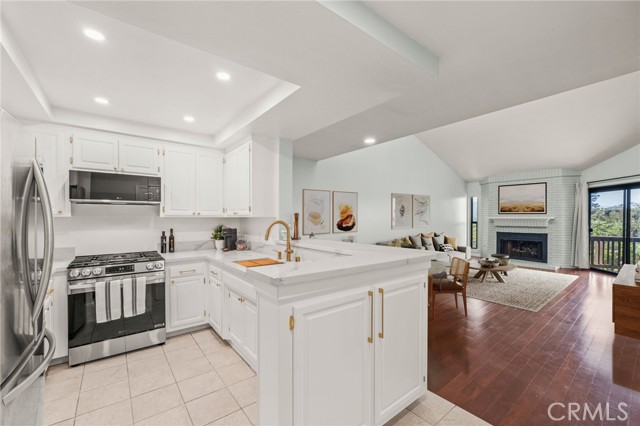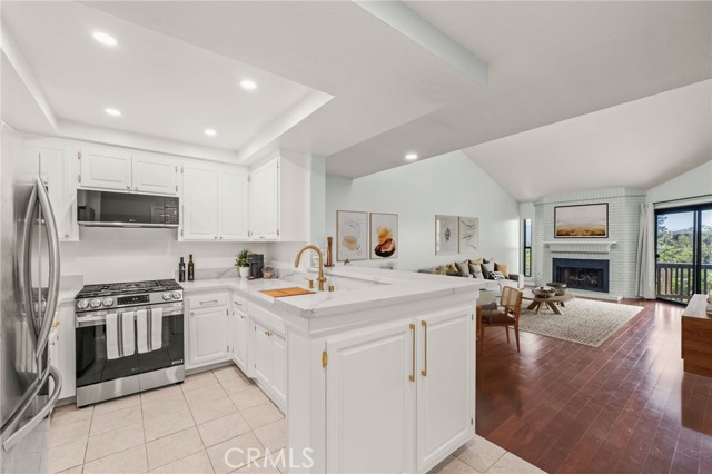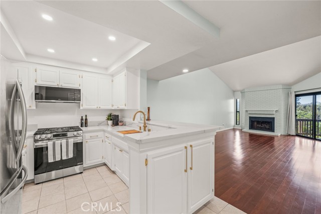 Step into this spacious, sun-drenched top-floor unit in the sought-after Villas Del Rey community—walking distance to the beach! Enjoy dramatic vaulted ceilings, a cozy fireplace, and a generous west-facing balcony with peaceful treetop views. The remodeled kitchen features stainless steel appliances, recessed lighting, and tile flooring. Wood floors run throughout the rest of the unit, adding warmth and continuity. The expansive primary suite offers a walk-in closet and a large soaking tub—perfect for unwinding. Additional perks include in-unit laundry, two assigned parking spaces, guest parking, and a private storage area. Villas Del Rey delivers resort-style amenities: pool, spa, gym, tennis courts, and clubhouse—all in the heart of Silicon Beach.