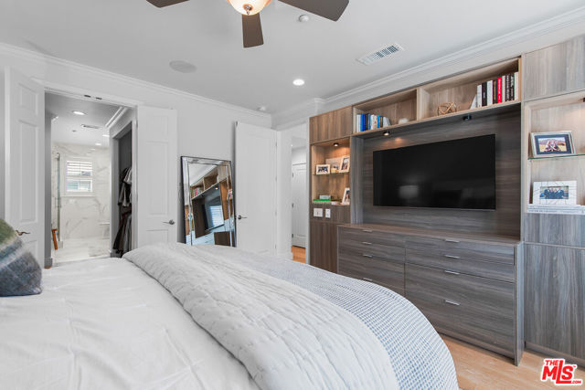 Step inside this stunning, fully remodeled townhome at Tapestry II in Playa Vista. Featuring 2 bedrooms, 2.5 bathrooms, and spanning approximately 1,600 square feet, this west-facing residence is truly one-of-a-kind! As you enter the open and spacious living room, you'll immediately appreciate the soaring ceilings and expansive windows that flood the space with natural light. Wide-plank hardwood floors run throughout, creating a cohesive and elegant feel. The chef's kitchen impresses with a Wolf oven, wine cooler, Sub-Zero refrigerator, and a wide kitchen entry uniquely created during the renovation. A custom built-in bar area with hanging glass storage and cabinetry adds both function and flair. Upstairs, the luxurious primary suite features in-ceiling speakers, a beautiful built-in media unit with shelving and drawers for extra storage, and a custom shoe cabinet beneath the windows. A California Closets system enhances the closet, leading into the fully remodeled bathroom with a separate soaking tub and waterfall shower surrounded by designer tile. The second bedroom offers extra-high ceilings and its own remodeled ensuite bathroom. Additional upgrades include a tankless water heater, newer HVAC system, epoxy-coated garage floors, and an extra storage room accessible from the private two-car (side-by-side) garage with direct home access. Perfectly located near the Playa Vista Library, Playa Vista Elementary, CenterPointe Club, The Resort, and the area's best shops and restaurants this is a rare opportunity to call one of Playa Vista's most sought-after homes your own.