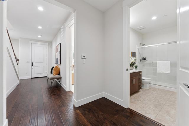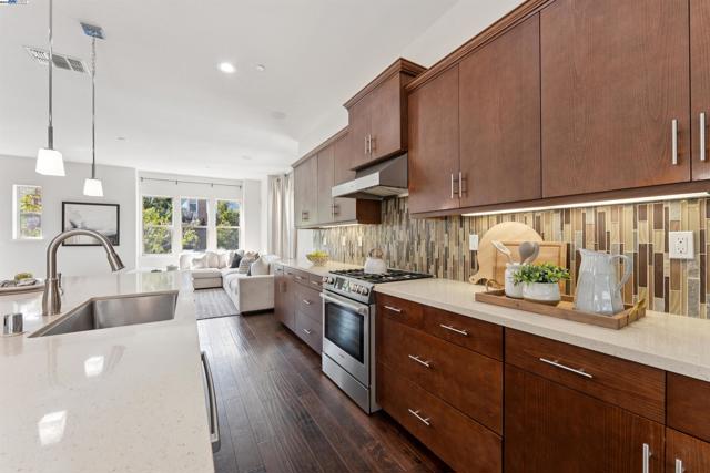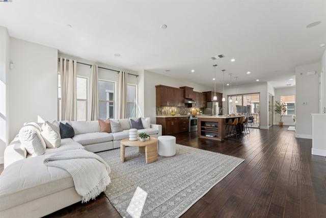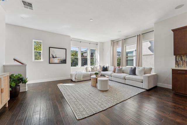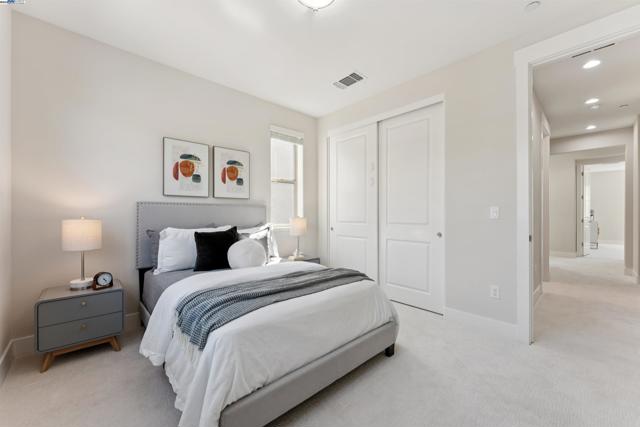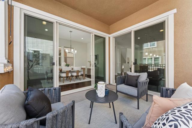 Rare opportunity - Township Square development with an elevator! Resort style amenities-clubhouse with pool, spa, fitness center, playground, BBQ, bocce ball court and more! Modeled after the Brownstones in New York, this "like-new" home is a three-story, 4 bedroom, 3 1/2 bath 2856 square foot masterpiece that is easily accessible with a private elevator, ideal for multi-generational living. The home features new carpet, hardwood floors, and 49 windows spanning over three floors making it light and bright. Incredible living options with a large bedroom/office and full bath on the first floor with access to a side yard and easy access to an oversized 2-car garage which is pre-wired for electric car charger and provides maximum second floor hosts a chef's kitchen complete with extra storage, white quartz countertops, Bosch SS appliances, gas cooktop, oversized island, spacious deck perfect for alfresco dinning. Third floor features the primary suite with a large walk-in closet, updated bathroom, 2 large secondary bedrooms, updated hall bathroom, and an oversized laundry room. Close to top-rated schools, Bernal sports park, fairgrounds, dining/shopping, and downtown. Enjoy views of the Pleasanton ridge & designated open space. Convenient access to I-680, I-580, ACE, and BART. Views: Ridge