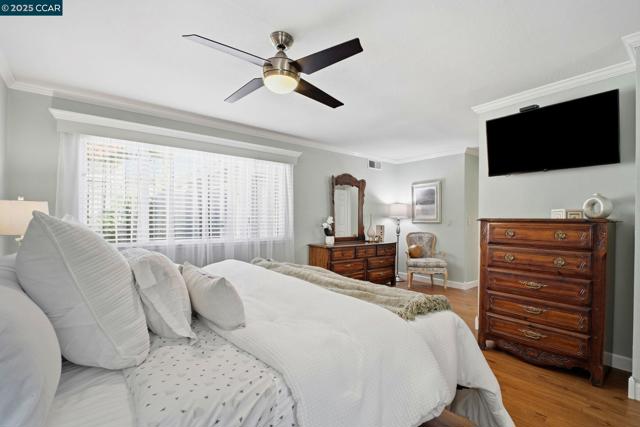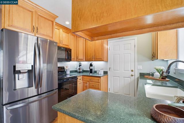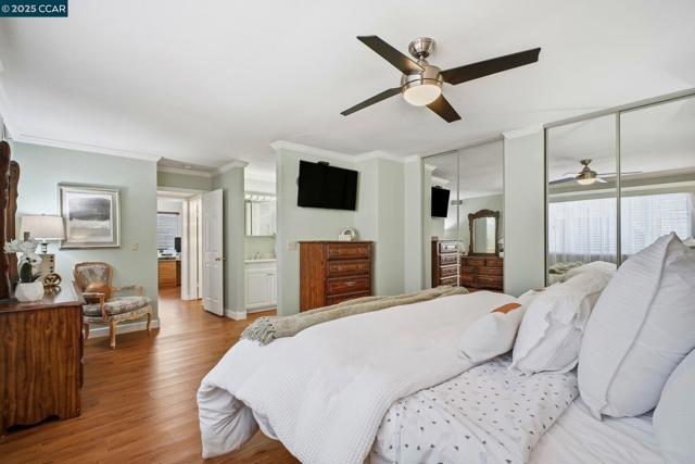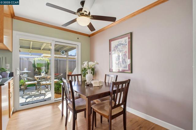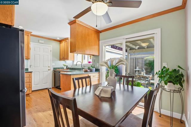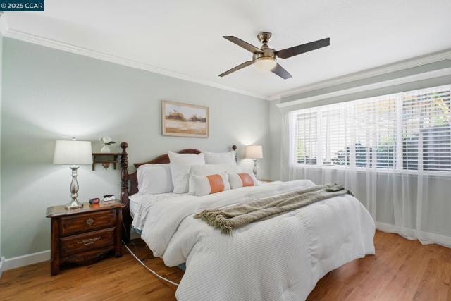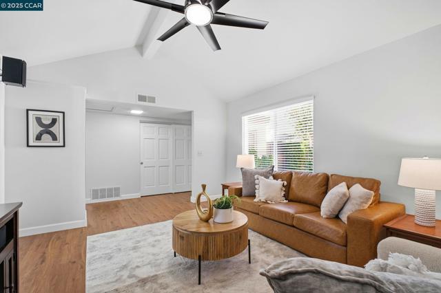 This Stunning Rarely Available Single Story Townhome tucked back from the street has been beautifully updated and meticulously maintained! Prime location walking distance to Historic Downtown Pleasanton and nestled near the Pleasanton foothills! You will find the Utmost in Privacy and Outstanding Condition, this home has it all! Only one shared wall & it's the garage wall! LVP flooring throughout, crown molding, kitchen with quartz counters & matching backsplash, walnut cabinetry, new stove/range with glass cooktop, New Microwave, Bosch dishwasher & under cabinet & ceiling LED illumination. Large primary suit with remodeled bathroom/shower, mirrored closet doors and custom closet organizers. New ceiling fans, primary and secondary electrical panels have been upgraded. Two car attached garage, with new EV charging outlet. The washer, dryer and refrigerator are included. Rear yard has a covered patio with custom Pergola, lush landscapes with many beautiful flowers, shrubs and a plum tree. Beautiful community pool with cabana & bathrooms & also has an RV/Boat storage area. Walk to downtown restaurants, shops, concerts in the park, farmers markets and more! Walk to the fair, close to freeway access, shopping, high ranking schools, hiking/biking trails and parks. Open Sun 11/16 1-4pm