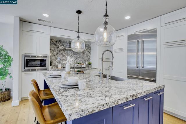 PRICE REDUCTION!!! This thoughtfully updated home offers the perfect blend of modern comfort and everyday convenience in the desirable Pleasanton Meadows neighborhood. Inviting single-story layout features luxury plank flooring, new carpet, recessed lighting, and fresh interior paint throughout. Enjoy peace of mind with a new roof, newer dual-pane windows, and solar panels. The remodeled kitchen is designed for both function and style, with custom cabinetry, a center island, built-in refrigerator, stainless steel appliances, and seamless flow into the family room with direct access to the backyard. The primary suite includes a sleek, remodeled ensuite bath, while three additional bedrooms share a tastefully updated hall bathroom. Step outside to your private backyard oasis—ideal for entertaining, gardening, or relaxing in the sun. Additional highlights include an attached three-car garage, an inside laundry closet, and potential for RV or boat parking. Conveniently located near top-rated schools, scenic parks, and walking trails, with easy access to shopping, dining, BART, I-580, and I-680. Residents also enjoy membership to the Pleasanton Meadows Cabana Club, which offers a pool, tennis courts, and a playground.
