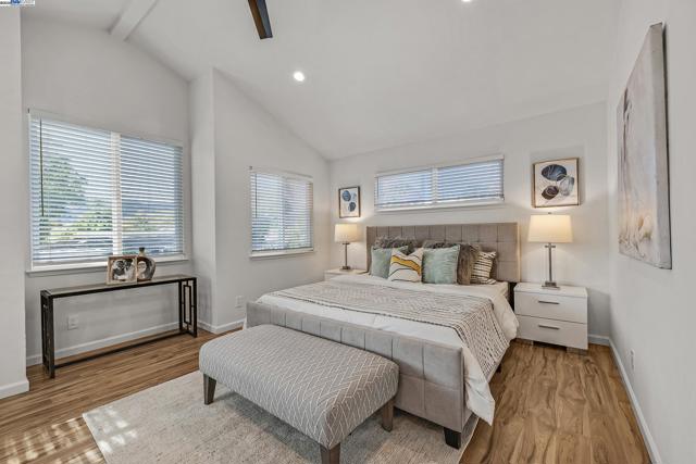 Freshly updated and beautifully appointed, this home offers the perfect blend of style and functionality. Soaring ceilings, new wide-plank flooring, and abundant natural light create inviting open living spaces. The remodeled kitchen features quartz counters, stainless steel appliances, custom cabinetry, and a double oven, flowing seamlessly into the dining and family rooms. A convenient downstairs bedroom and full bath add flexibility, while a bonus room offers space for an office, workshop, or craft area. Upstairs, the spacious primary suite impresses with vaulted ceilings and a stunning ensuite bath. With a 3-car garage, new finishes throughout, and a private backyard surrounded by mature trees, this move-in-ready home combines modern comfort with Pleasanton charm—just minutes from downtown, parks, trails, and award-winning schools.