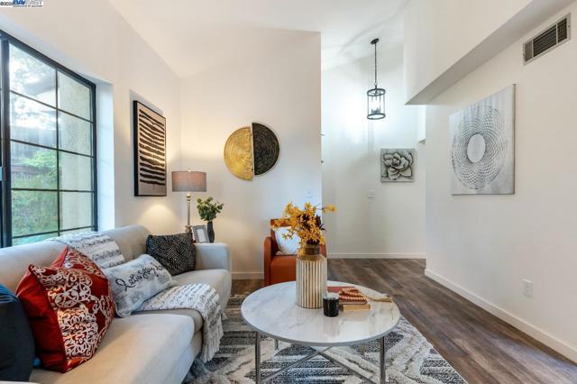 Beautifully Updated 2-story Townhome Offering Approx. 1,200 sq. ft. Of Living Space. The Open Floor Plan Includes A Separate Family Room With Vaulted Ceilings, Gas Fireplace Surrounded With Tiles, A Dining Area Off The Kitchen That Opens To A Private Patio—Perfect for Entertaining. Updates Include Fresh Interior Paint, Laminate Floors, Plush Carpet, Recessed Lighting, Mirrored Closet Doors, Refinished Kitchen Cabinets, Quartz Countertops, Sink, Faucet, Stainless Steel Refrigerator, Electric Range & Dishwasher. Updated Bath/Shower Enclosures With New Vanity Tops. Ample Closet Plus a Large Exterior Storage Space, In-Unit Washer/Drye For Add Convenience. Enjoy Central A/C, A Detached 1-car Garage + 1 Assigned Parking Space. Set in a Private Location Within The Community With Only One Neighbor On One Side, This Home Offers Peace And Quiet. HOA Covers Water, Trash, Pool, Roof, And Insurance. Fantastic Location—Walk To Shops, Schools, Parks, And Downtown! Easy Access To Hwy 84, I-680 And Top-Rated Schools. Truly A Commuter’s Dream!