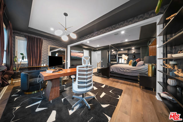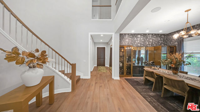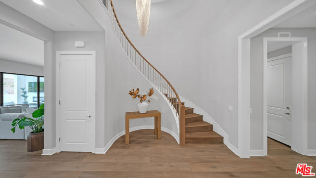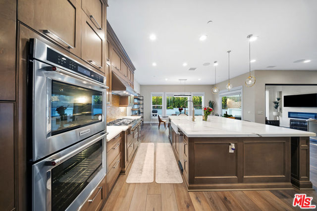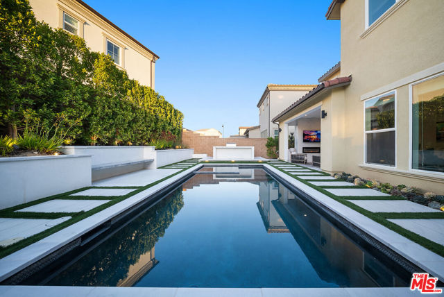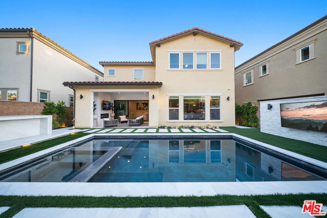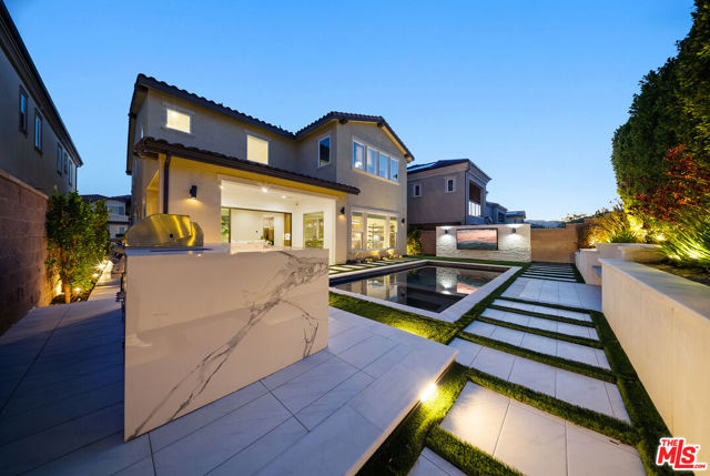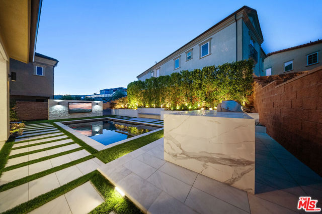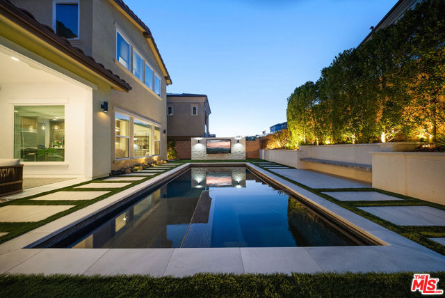 THE ONLY HOME available with a POOL in HILLCREST! Major Price Adjustment! Stunning New Construction in Hillcrest at Porter Ranch. Nestled within the prestigious, 24 HR guard-gated Hillcrest community, this exquisite 5-bedroom, 6-bathroom home offers 4,278 sq ft luxurious living space. This showcase modern design home offers high-end finishes throughout. Chef's kitchen featuring a custom Caesarstone oversized island, dual ovens, floor to ceiling cabinetry, elegant backsplash. Dramatic custom chandelier in foyer, beautiful pendant lighting over the island, and stunning light fixtures throughout. Spacious bonus family room enhancing the open-concept layout. Each bedroom includes its own en-suite bathroom for added privacy. The generous sized Primary suite features a private retreat, coffered ceilings, elegant custom paint, expansive walk-in closet, a custom oversized tub, and glass enclosed shower with floor to ceiling luxurious tile. Rich hardwood floors throughout, complementing the seamless indoor-outdoor flow. Exterior & Community Amenities include Expansive rear yard with a gorgeous inground pool/spa. Designer TV wall, Waterfall edge stone island with Built-in stainless steel BBQ. Located within a short distance to highly coveted PRCS TK-8. Close proximity to premium shopping, hiking trails, fine dining, & vibrant entertainment options. This meticulously upgraded home epitomizes luxury living in Porter Ranch. Click on the VIRTUAL TOUR LINK for a full video. Seller says Bring us an OFFER!
