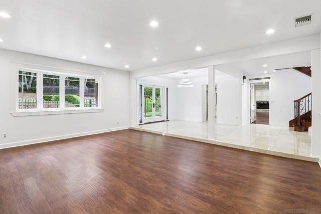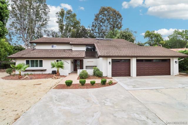 Located in the quiet Green Valley neighborhood of North Poway, this well-maintained home offers a thoughtful blend of comfort, quality, and space. A dramatic wood staircase greets you as you enter the spacious living room, creating a warm and welcoming first impression. The recently updated kitchen features quartz countertops, new white cabinetry, high-end appliances, and double-pane windows, providing both style and practicality. French doors open to the backyard, filling the home with natural light and offering views of the large backyard and pool area. The interior includes several comfortable living spaces, including a generous living room and a downstairs bedroom with a full bathroom. Hardwood flooring runs throughout the home, adding character and continuity. There are five bedrooms and four full bathrooms, including a recently renovated primary suite with a walk-in closet and updated vanity. Recent improvements include a new electrical panel and updated windows throughout. The half-acre lot is landscaped with mature trees and greenery, creating a private and usable outdoor space. The backyard features a fenced pool and spa area, a fire pit, and a play structure beneath the shade—great for everyday use or entertaining. There’s also direct access to nearby hiking and equestrian trails. 1200 SqFt ADU plans are approved by the city of Poway.